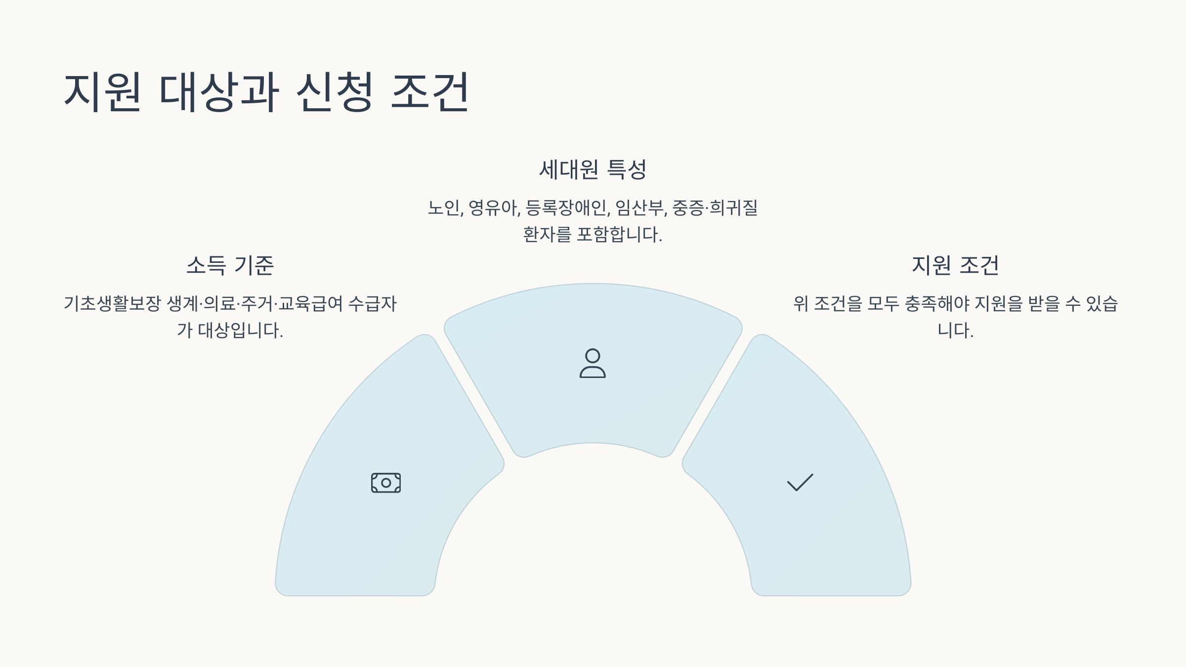 대상자는 해마다 변동될 수 있으니, 해당 연도의 기준을 반드시 확인하고 신청하는 게 좋아요. 관할 주민센터나 복지로 홈페이지에서 기준 확인이 가능하답니다!
