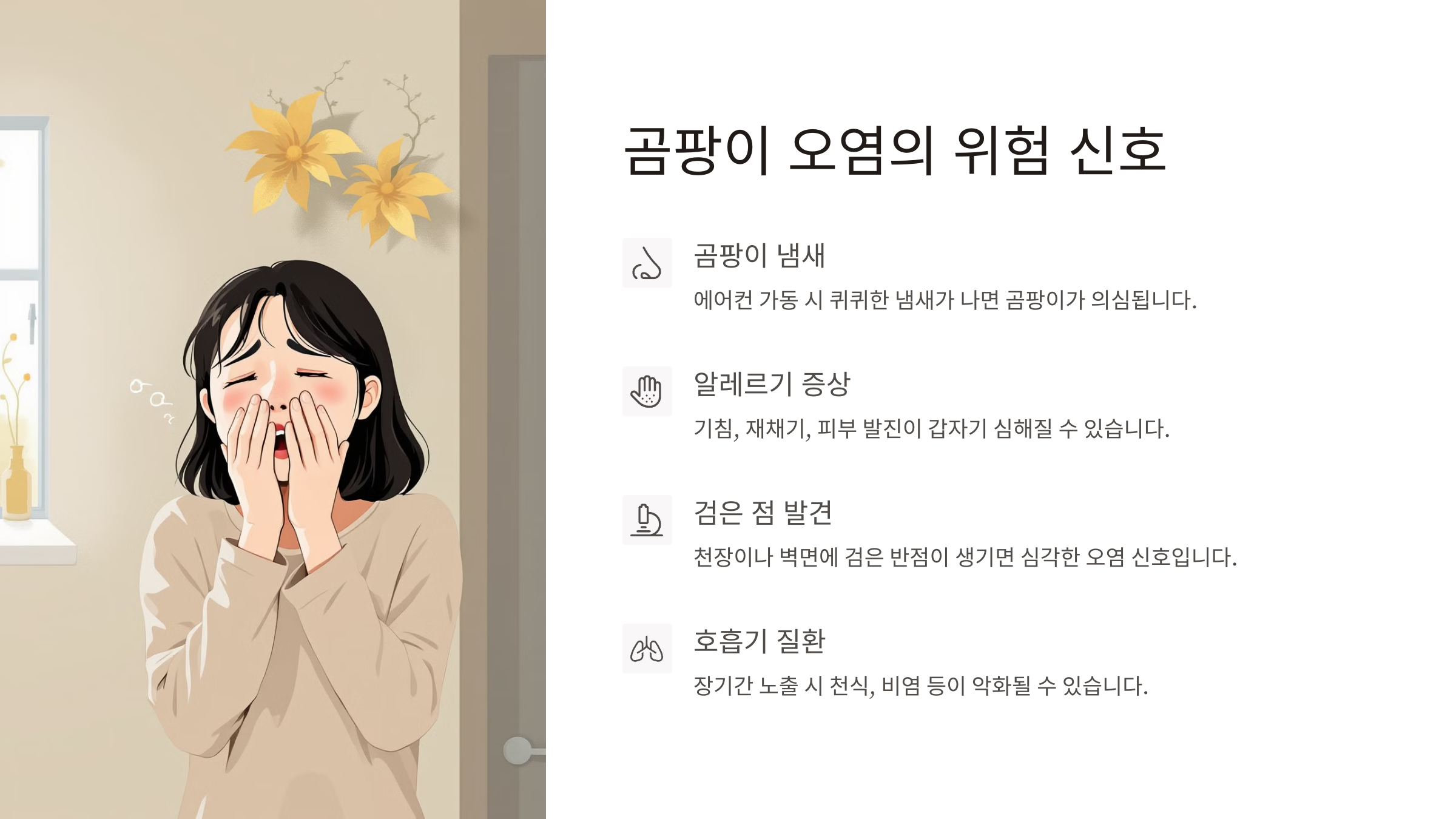 냄새는 곰팡이의 시작이에요. 냄새가 감지되면 바로 필터와 송풍구를 확인하고, 초기에 관리하면 확산을 막을 수 있어요.