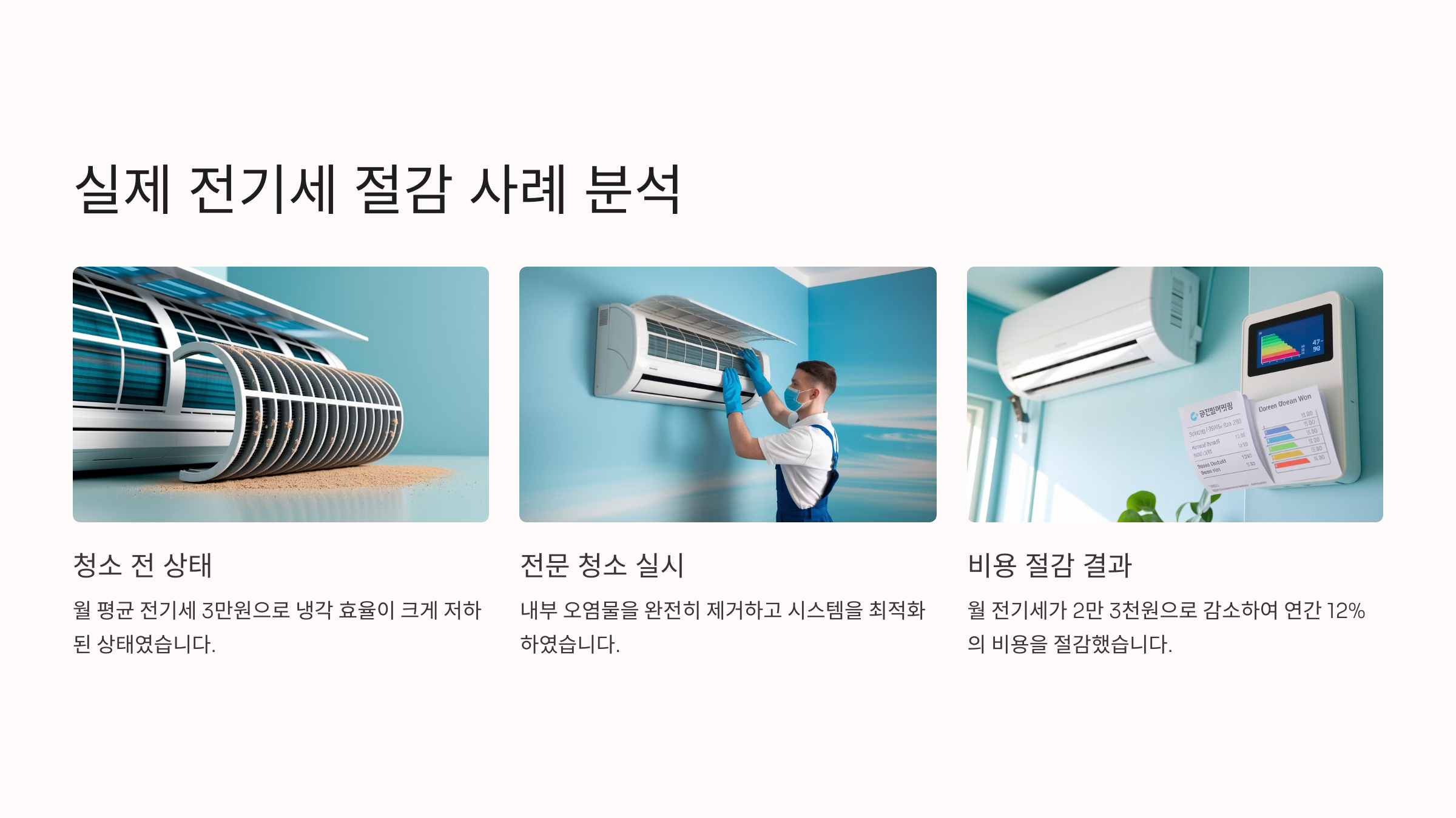 물론 비용은 들지만, 청소 후 2~3개월간 전기세가 월 2~3만 원 절감된다고 생각하면 충분히 금방 본전은 뽑을 수 있어요. 고장 예방 효과까지 감안하면 오히려 절약인 셈이죠.