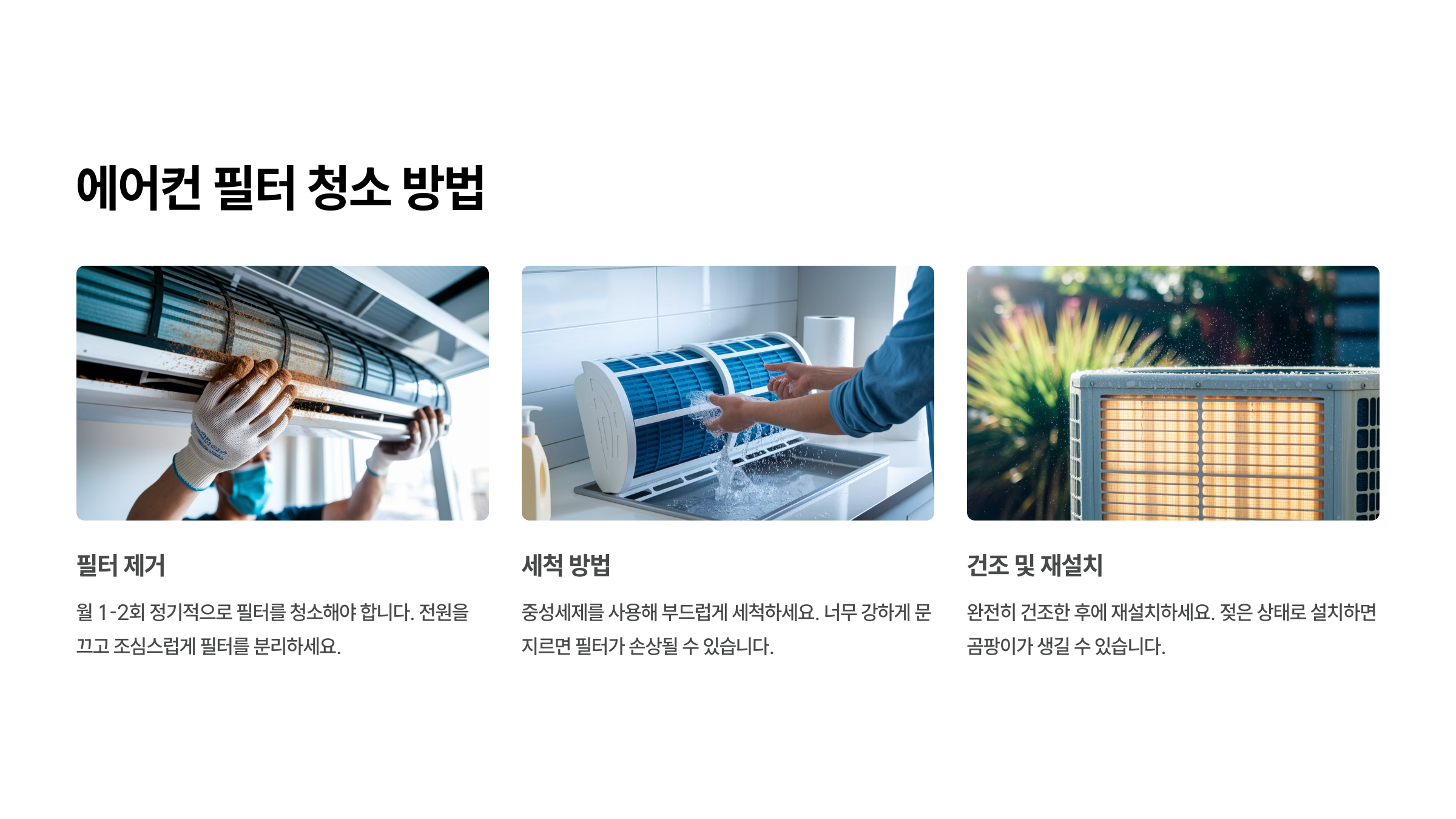 | 필터 청소 | 2주~1개월 | 계절·사용량 따라 조절 |