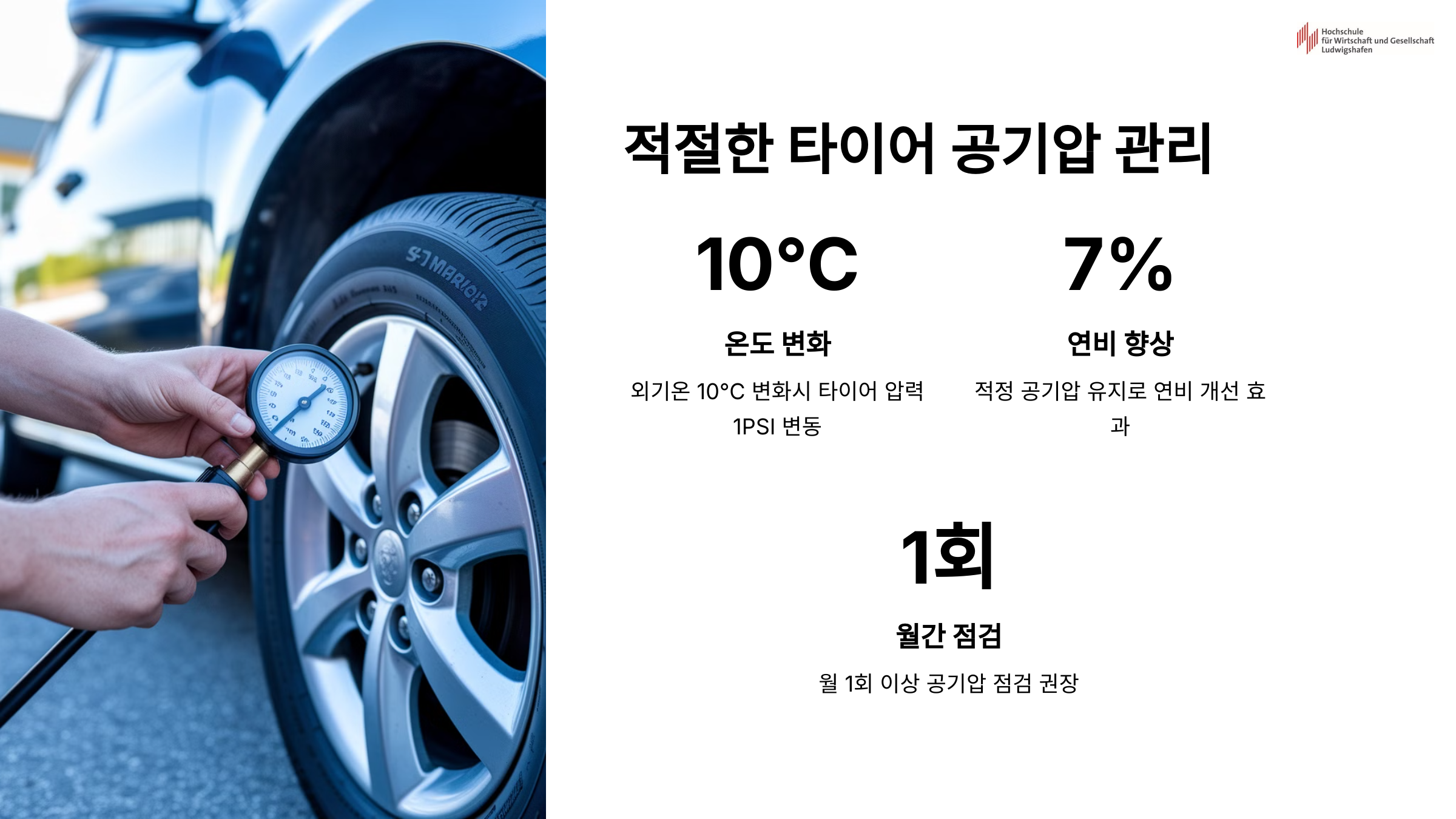 매달 1회 이상 공기압을 점검하는 습관을 들이면 좋아요. 요즘은 셀프 주유소에서도 손쉽게 체크할 수 있는 장비가 많으니까, 주유할 때 함께 확인해보는 걸 추천드려요!