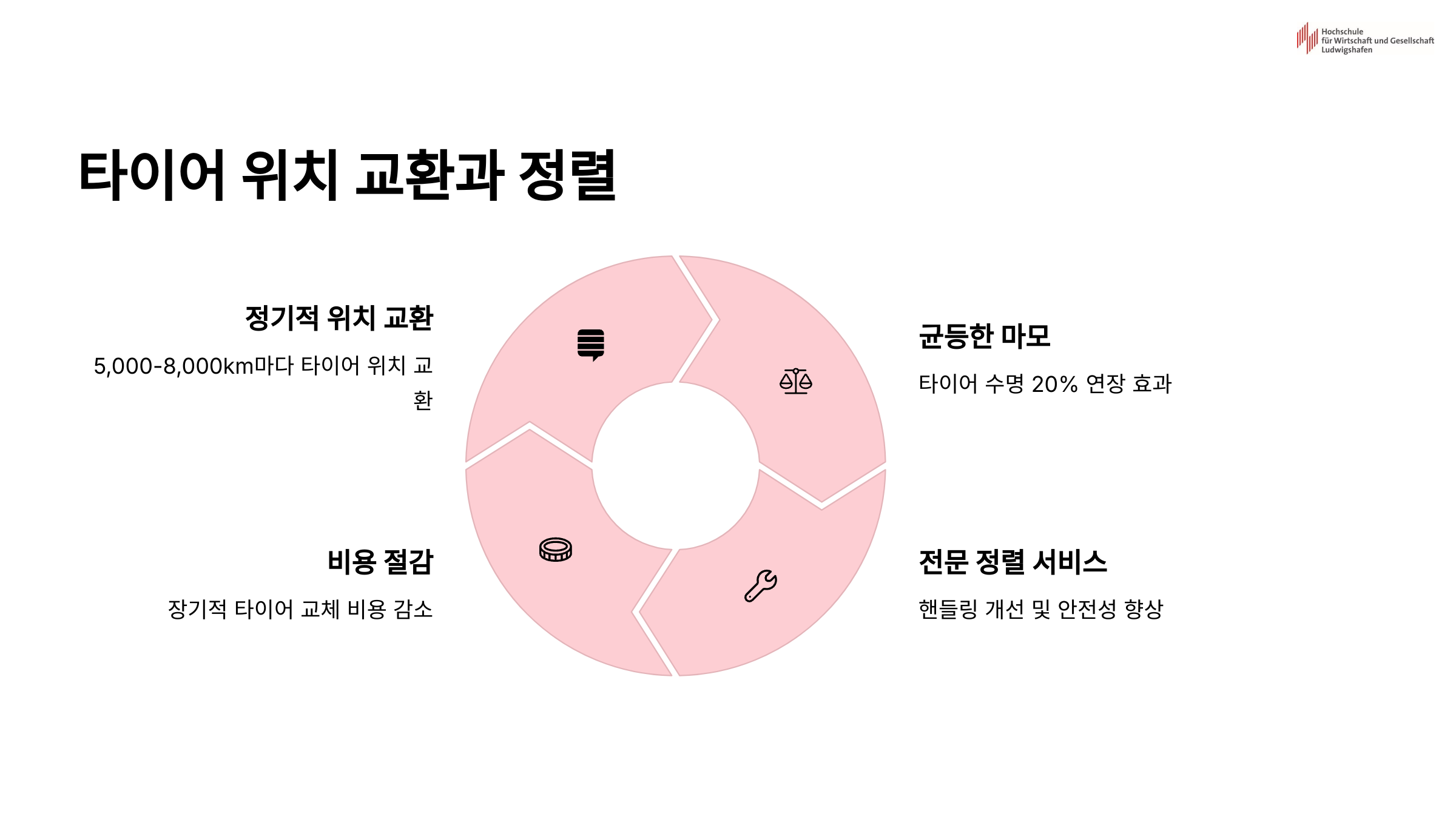 위치 교환은 보통 8,000~10,000km마다 해주는 것이 좋아요. 앞뒤만 바꾸는 게 아니라, 교차 방식(X자 형태)으로 교환하면 전체 마모 균형을 맞추는 데 더 효과적이에요. 4륜구동 차량도 예외는 아니랍니다.