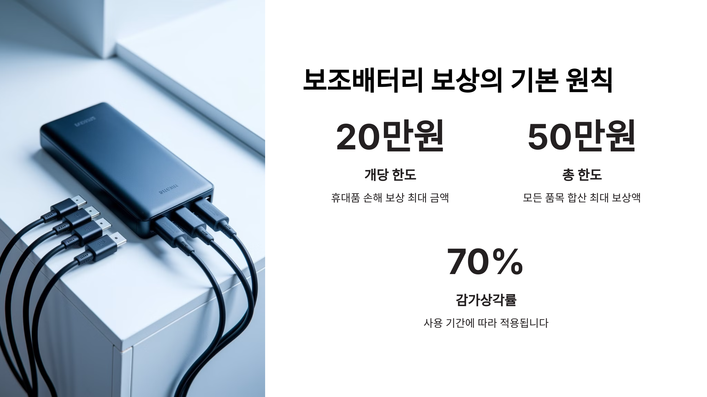 A3. 제품 구입일 기준 1년 이내면 대부분 보상 대상이에요. 보조배터리도 전자기기로 인정되는 경우에 한해요.