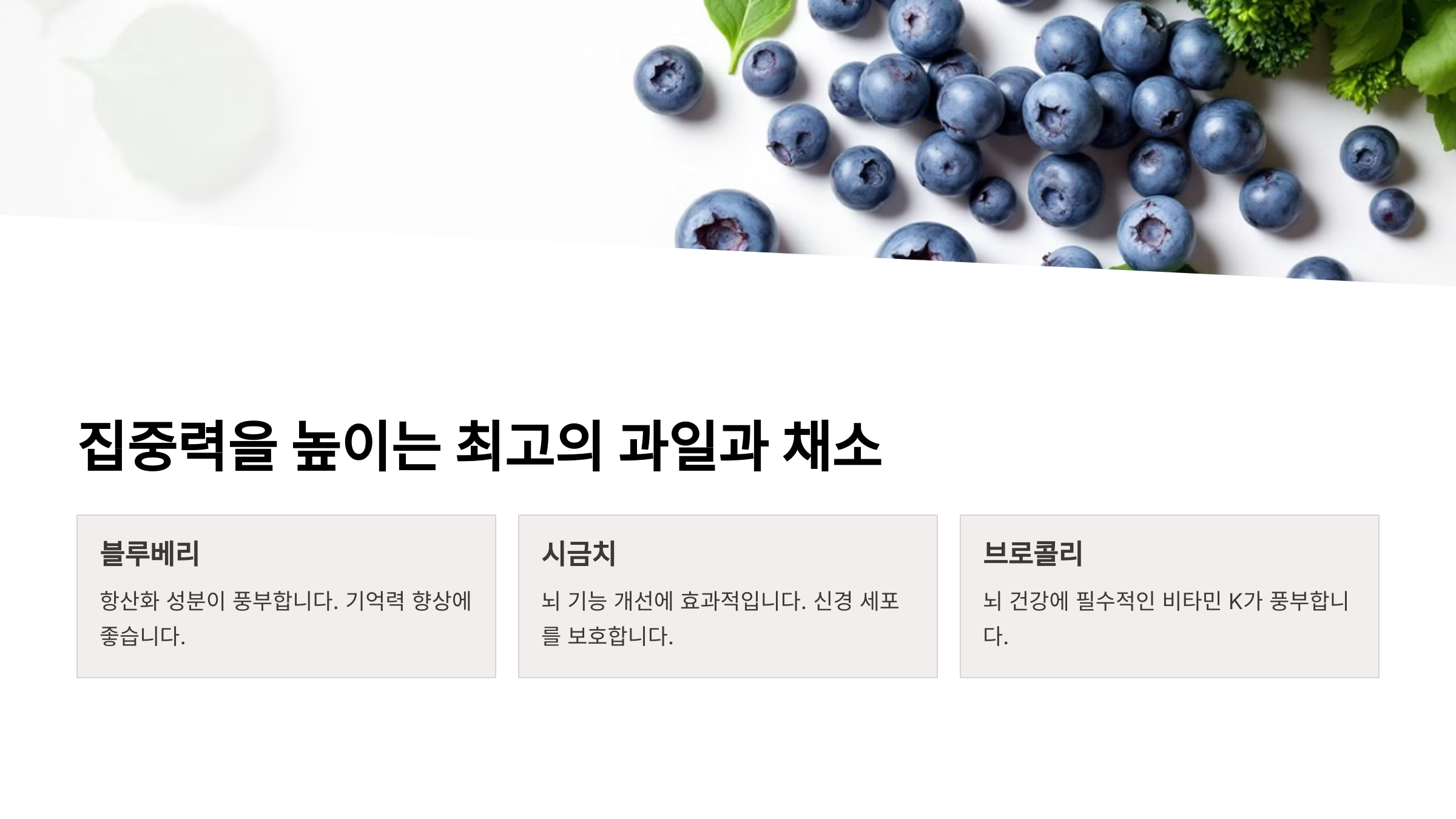이제 집중력에 도움이 되는 음식들을 하나씩 살펴볼까요? 😃