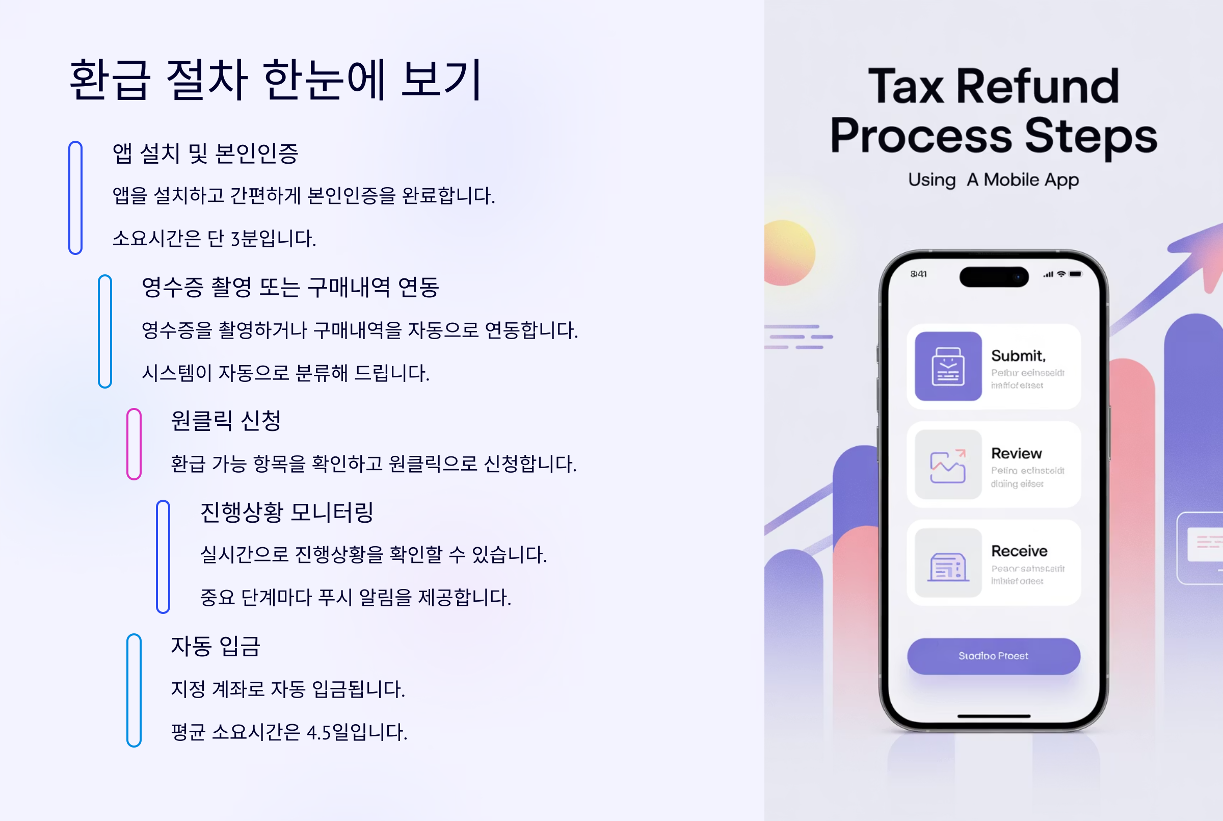 선택이 끝나면, 바로 예상 환급금액이 화면에 나타나요. 이 금액은 실시간으로 계산되며, 실수나 누락 없이 정확하게 반영돼요. 환급 신청 버튼을 누르면 제출이 완료되고, 환급은 보통 1~2주 이내에 입금돼요.