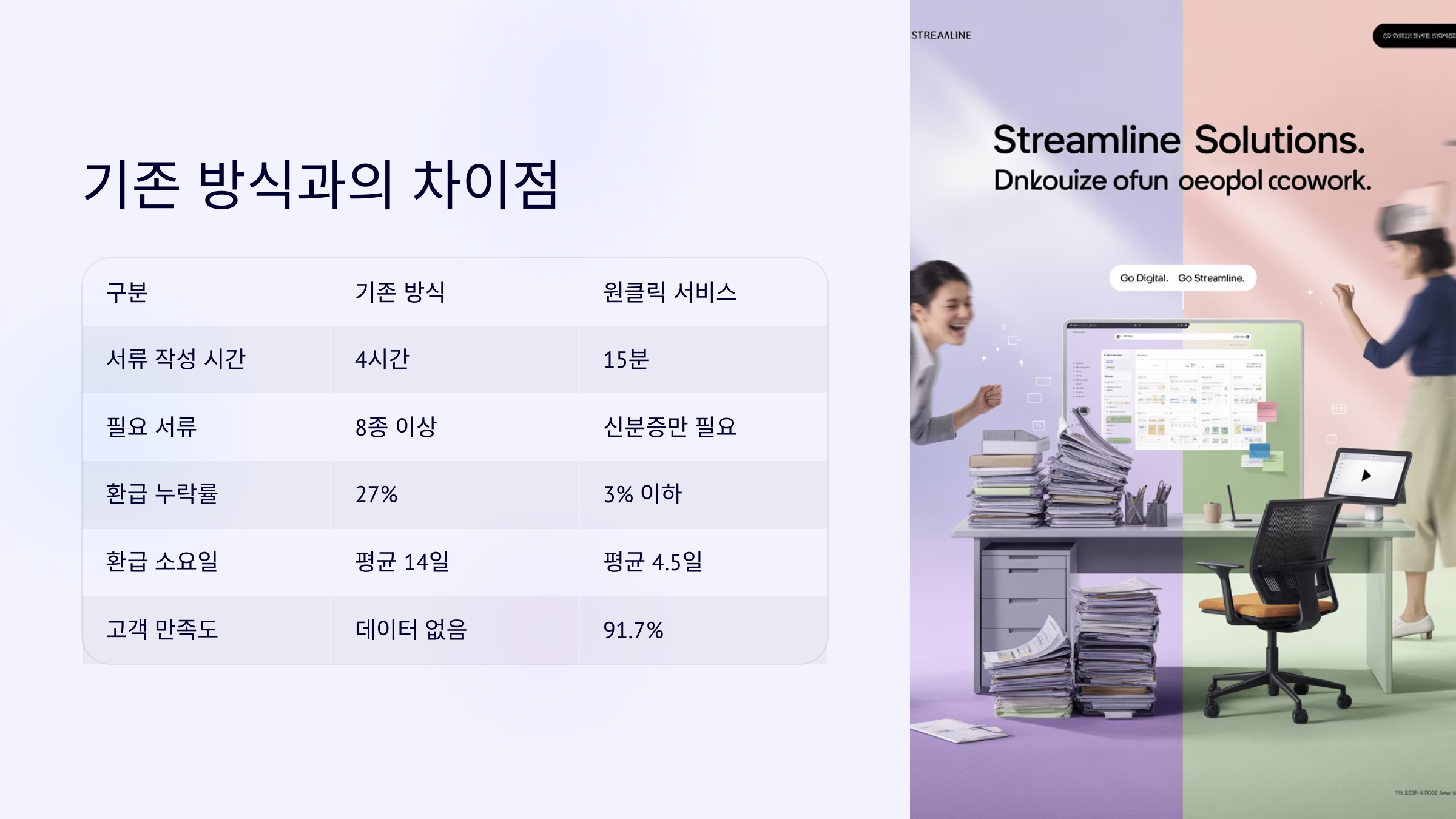 | 소요 시간 | 2~3주 이상 | 5분 내 처리 |