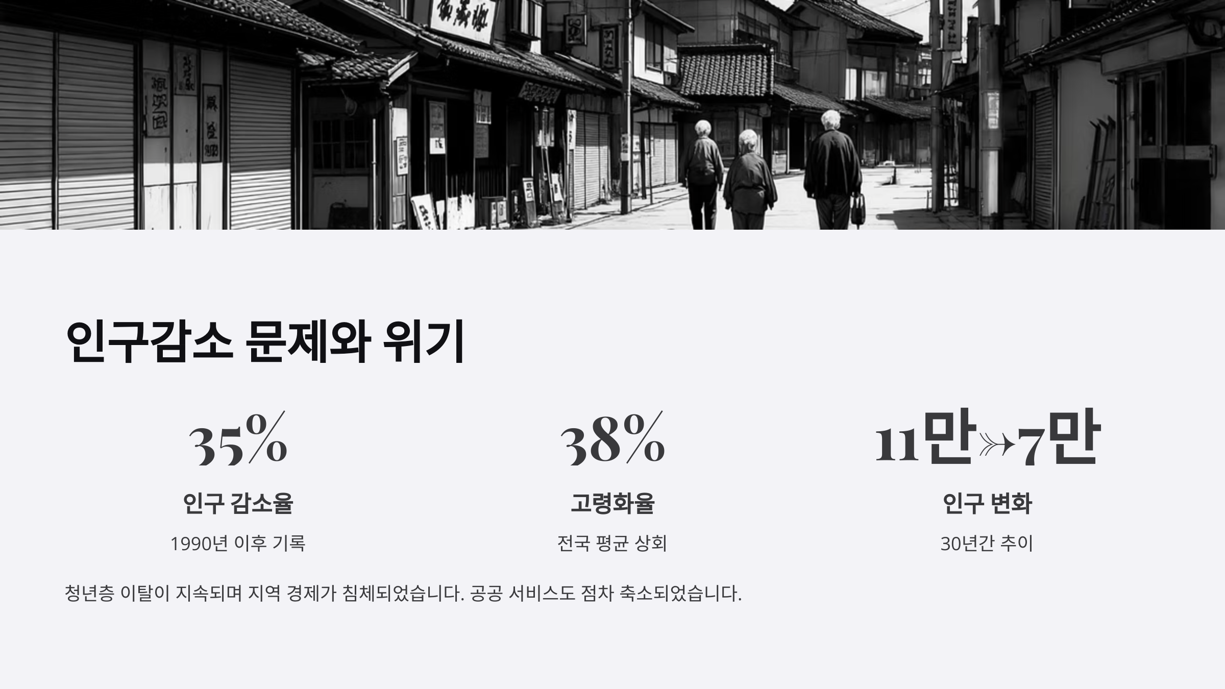 무엇보다 중요한 건 시민과의 대화와 신뢰예요. 도시의 축소는 감정적으로 민감할 수 있지만, 수치와 공감으로 설득하고, 함께 도시를 설계하는 구조를 만든다면 더 단단한 도시로 재편될 수 있어요.