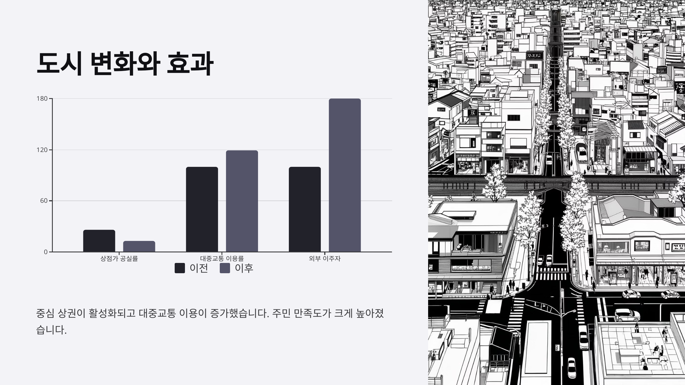 이제 마지막으로, 이런 중심지 집중 전략이 실제로 어떤 도시 변화를 만들어냈는지 효과를 정리해볼게요!