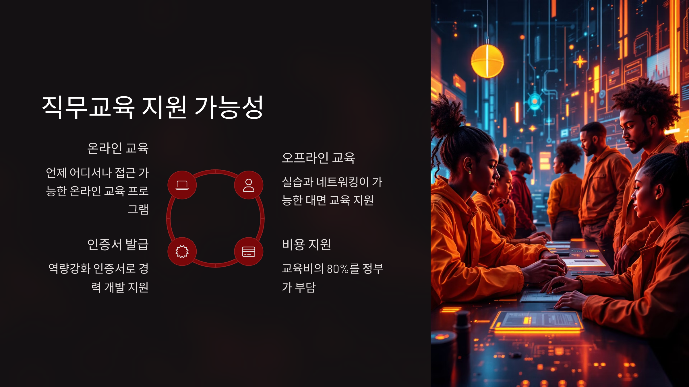 | 사업주 직업능력개발훈련 | 교육비 최대 100% 환급 | 훈련기관 등록 필수 |