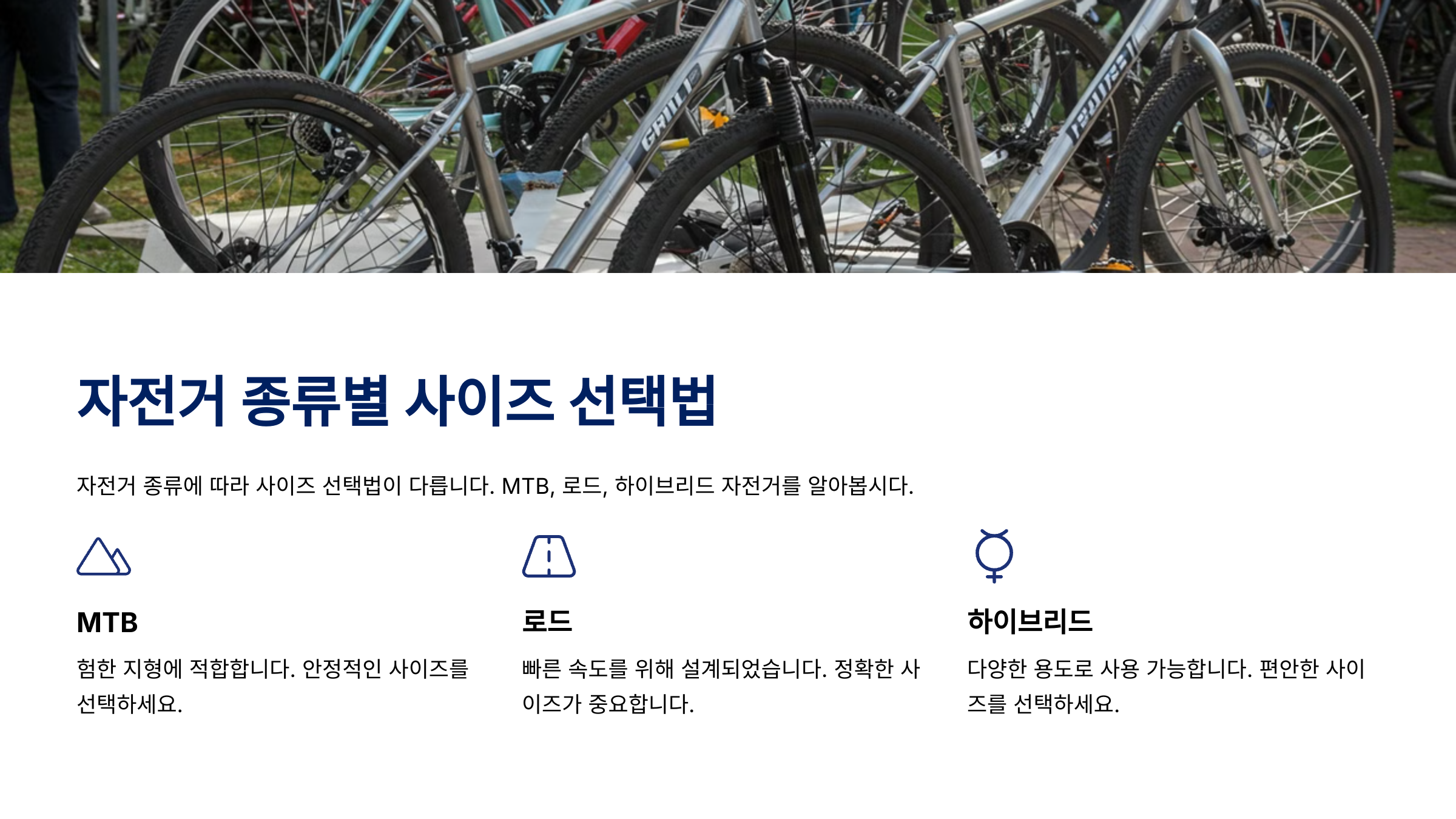 • ✅ 용도에 맞는 자전거 선택(로드, MTB, 하이브리드)