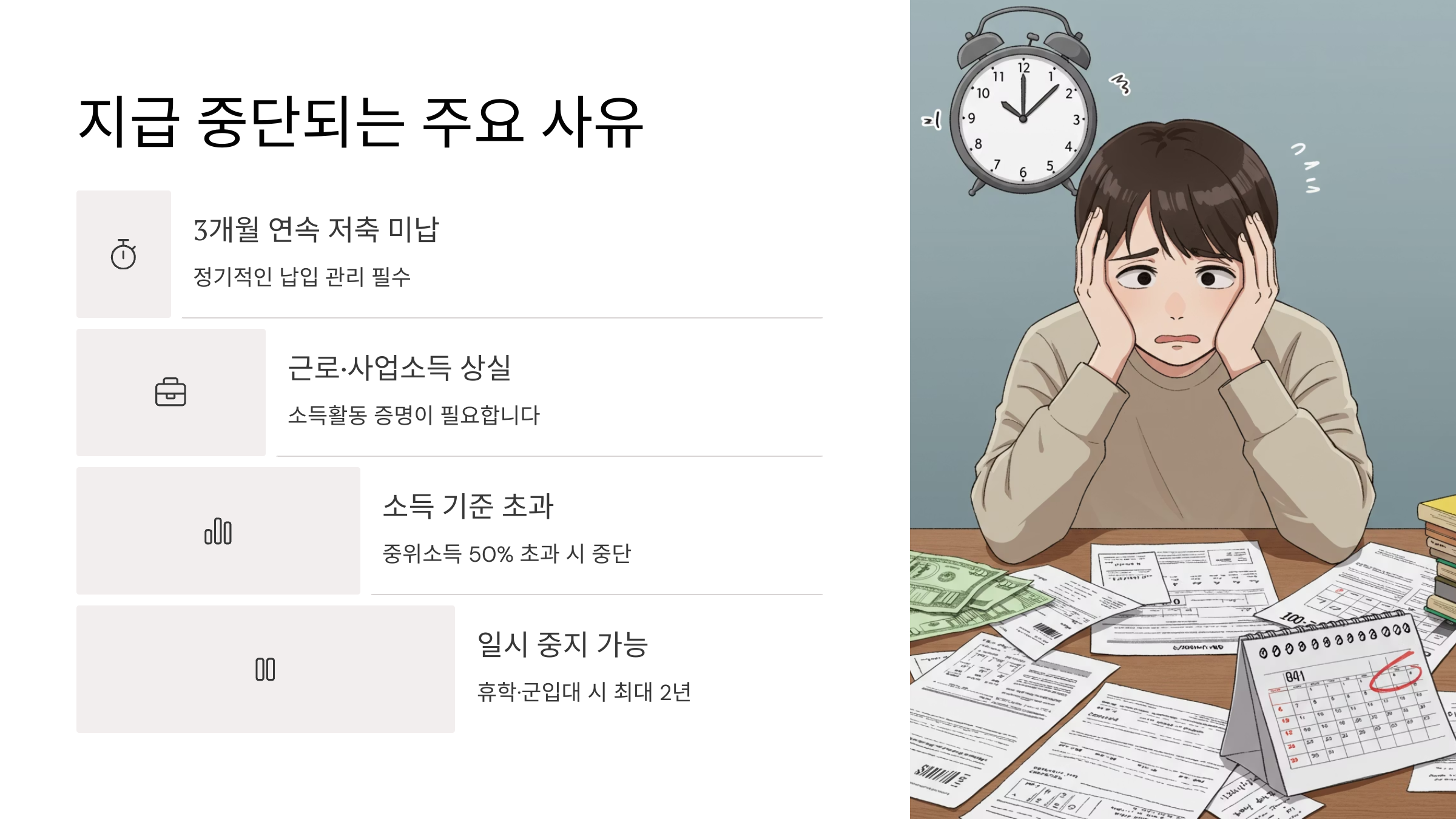 📌 지급 중단되는 주요 사유