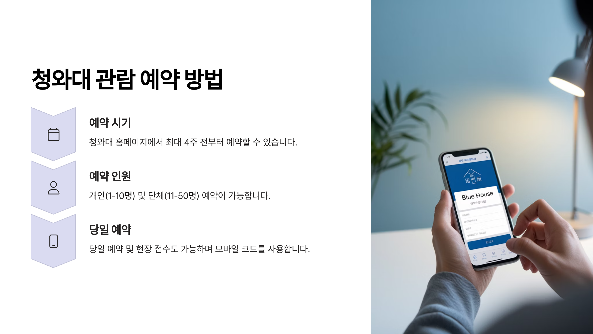 관람을 위해선 사전 예약이 필수예요. 무턱대고 가면 입장할 수 없기 때문에, 예약 방법을 미리 알고 준비하는 것이 중요해요. 지금부터 청와대 관람 예약하는 방법부터 입장 절차, 관람 포인트까지 하나하나 자세히 안내해 줄게요! 😊