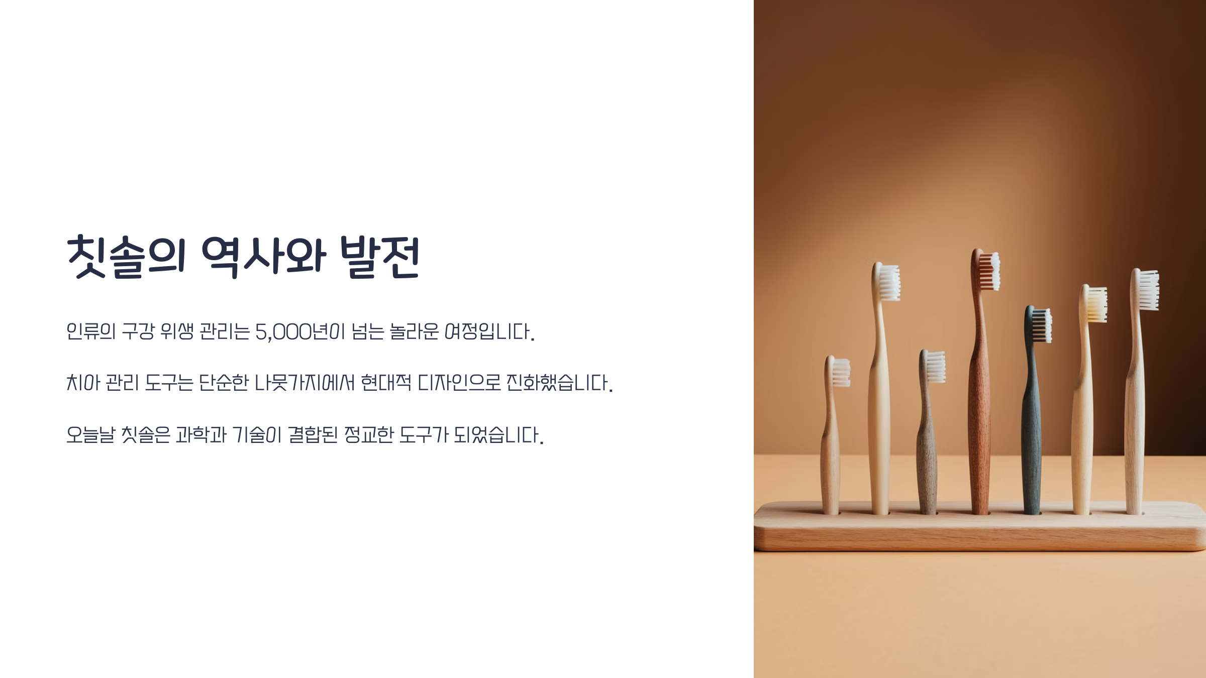 칫솔 하나에도 시대의 변화와 기술 발전이 담겨 있다는 사실, 참 흥미롭죠? 단순한 위생용품이 아니라 역사와 과학이 만나 발전해온 도구라는 걸 알면, 더 잘 관리하고 싶은 마음이 생길 거예요.