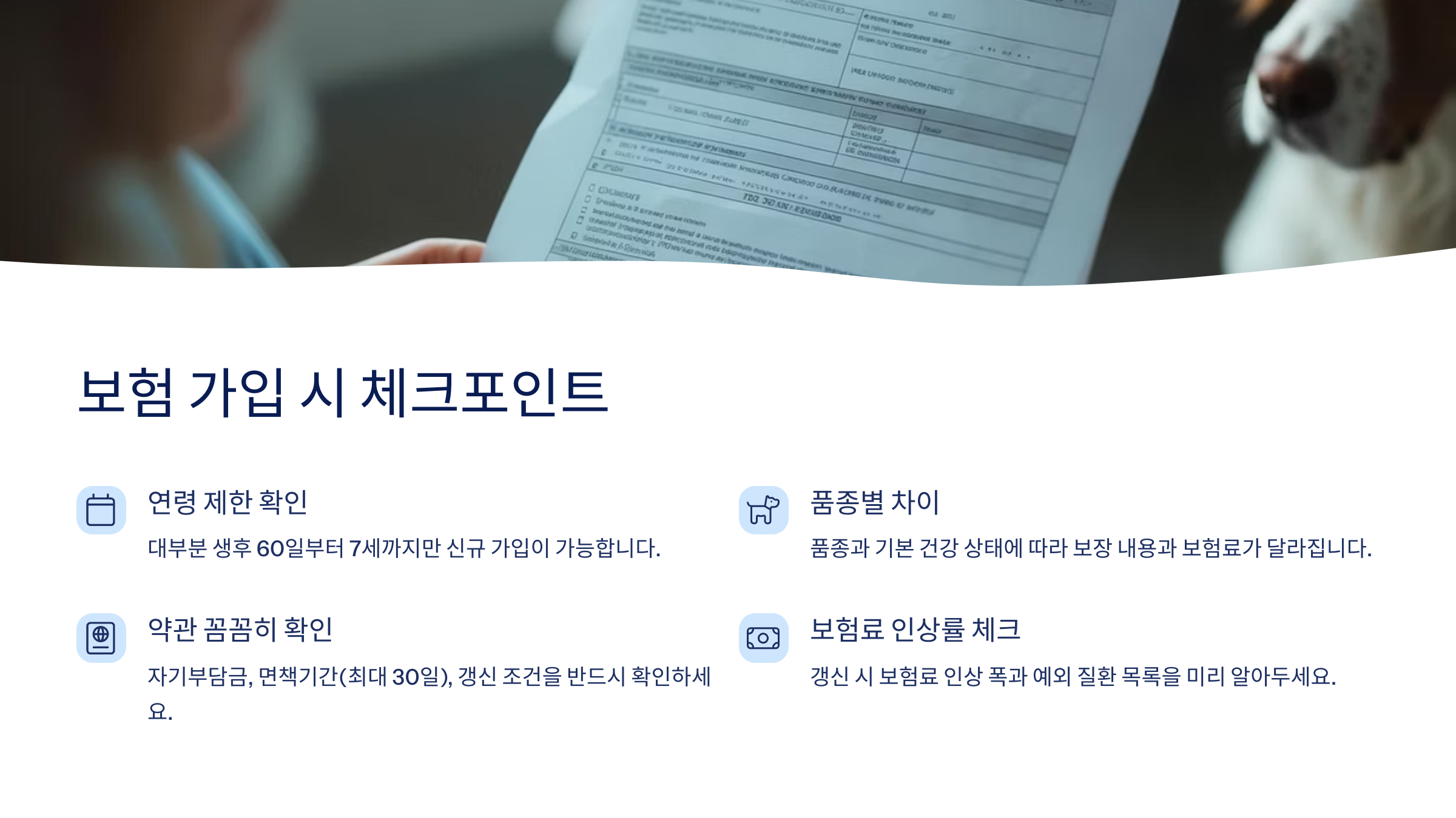 펫보험을 고를 때 가장 먼저 체크해야 할 건 ‘내 반려동물이 보험 가입 대상인지’예요. 대부분의 펫보험은 연령 제한이 있어서, 생후 3개월부터 7~8세 사이만 가입 가능하답니다. 그 외 나이는 가입 자체가 거절되거나 제한될 수 있어요.