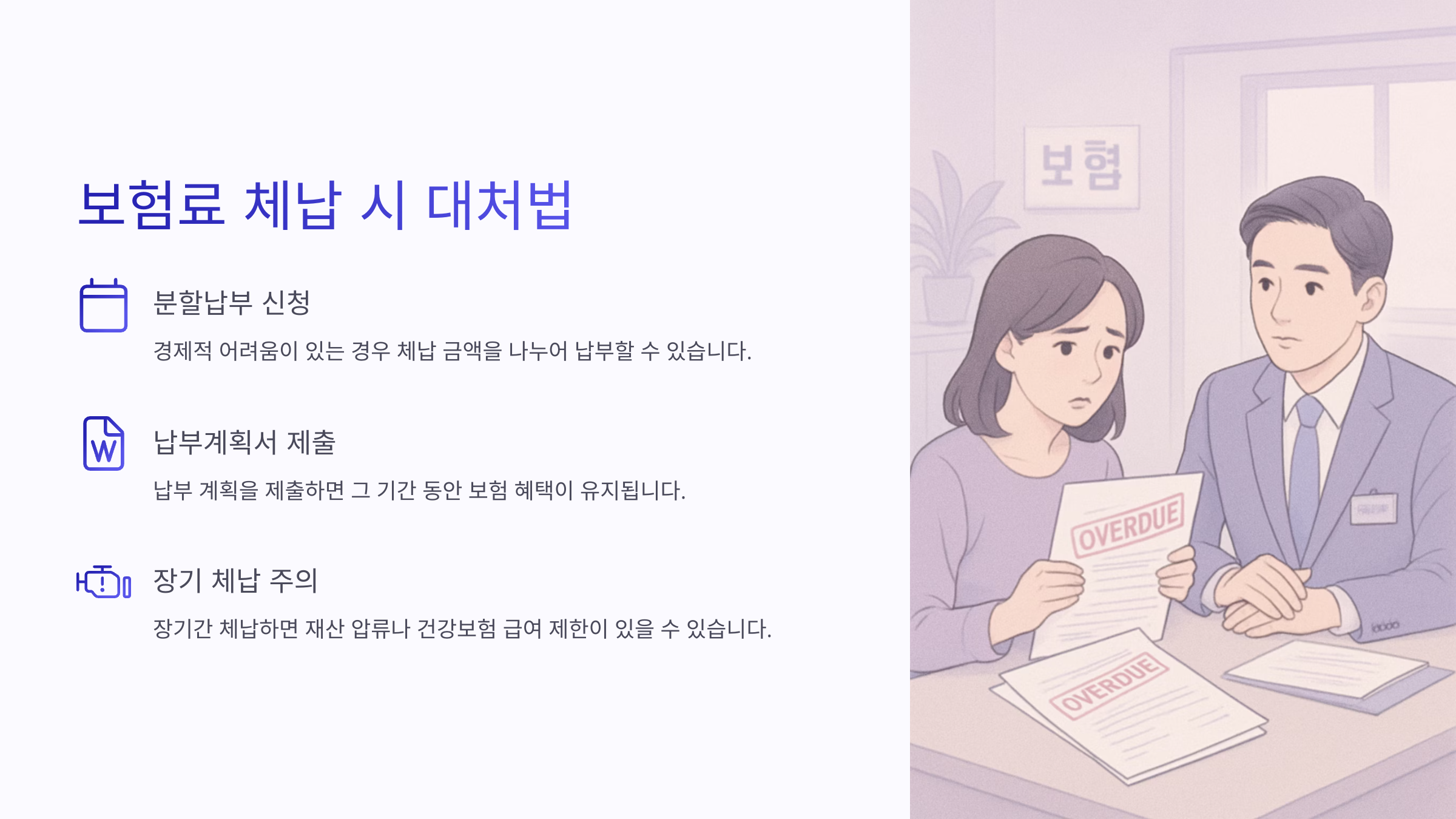 보험료가 밀렸다고 무작정 피하면 더 큰 문제가 생길 수 있어요. 체납 시점에서 조기에 조정만 해도 납부 부담이 절반 이하로 줄어드는 경우가 많아요. 절대 그냥 넘기지 마세요!