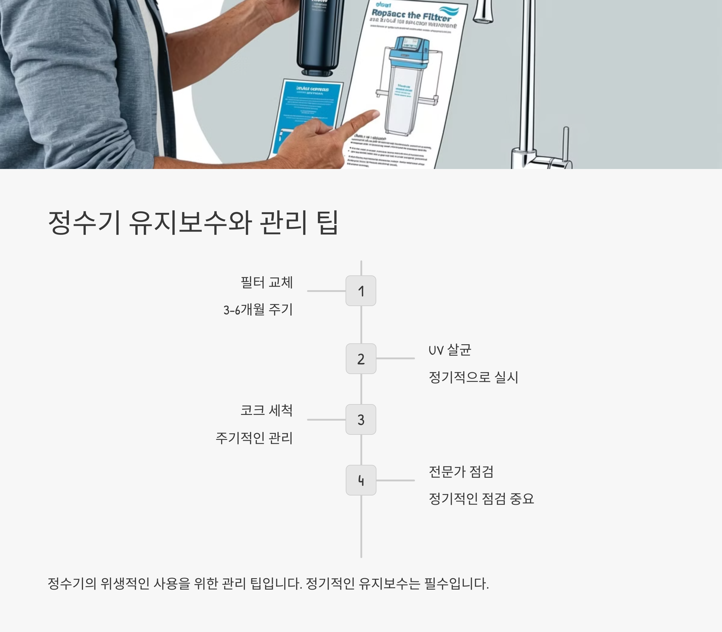 정수기는 깨끗한 물을 공급하기 때문에 **정기적인 관리가 필수**예요! 🚰✨
