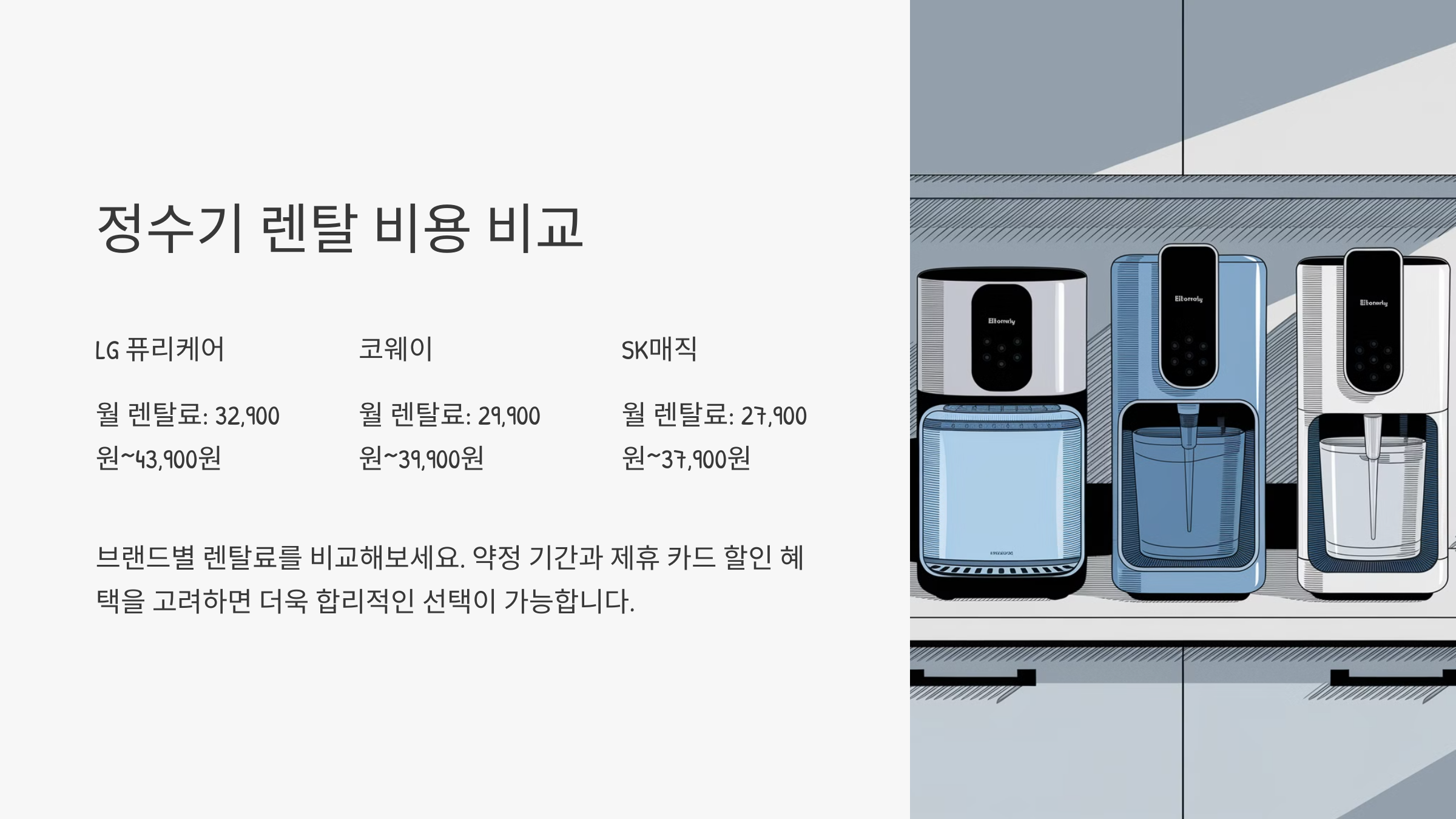 이제 **정수기 렌탈 비용 비교와 추천 브랜드**까지 정리해볼께요! 🚀