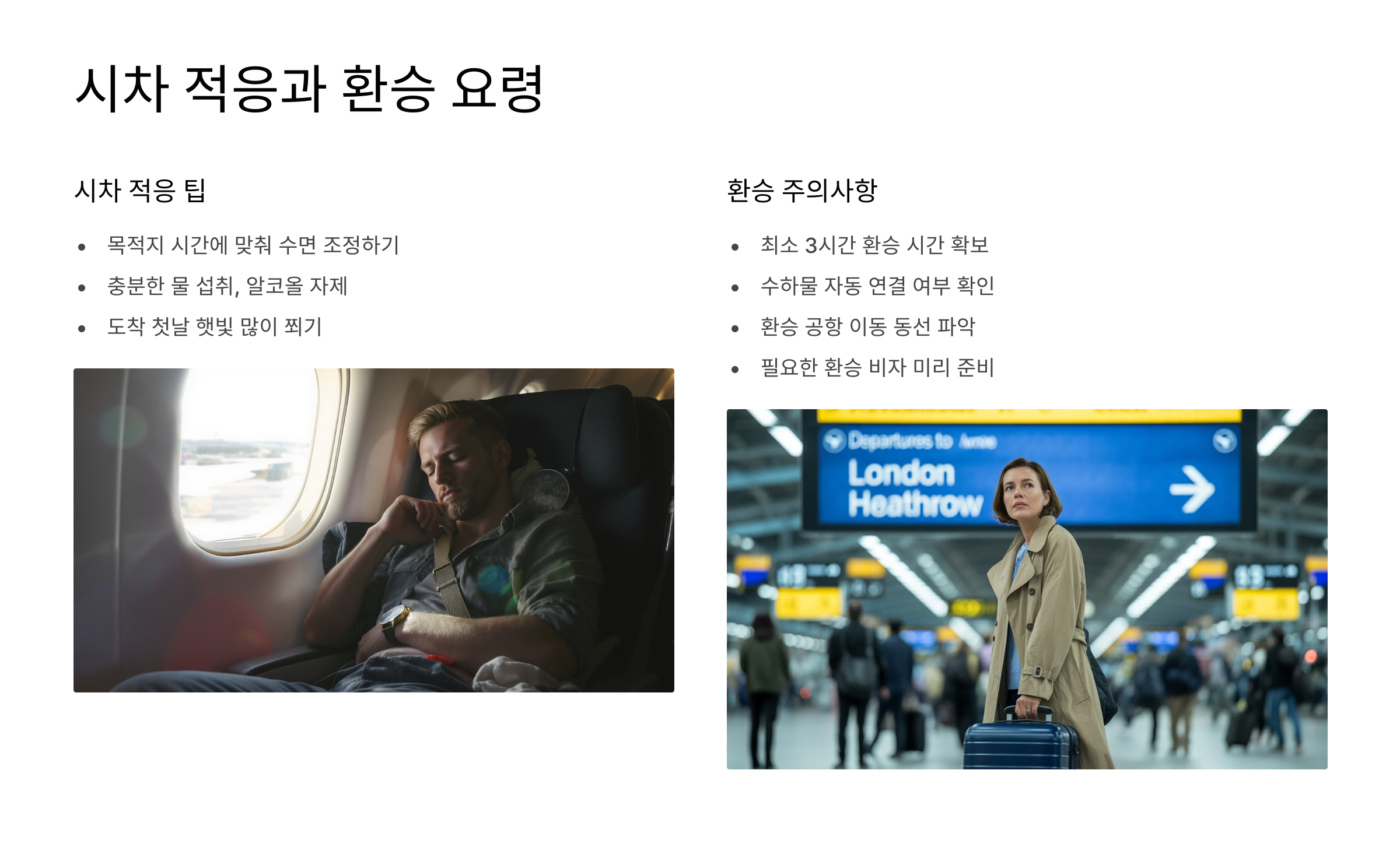 시차 적응만 잘해도 여행이 훨씬 부드러워져요. 피곤함 없이 바로 여행 모드로 돌입 가능! 💪