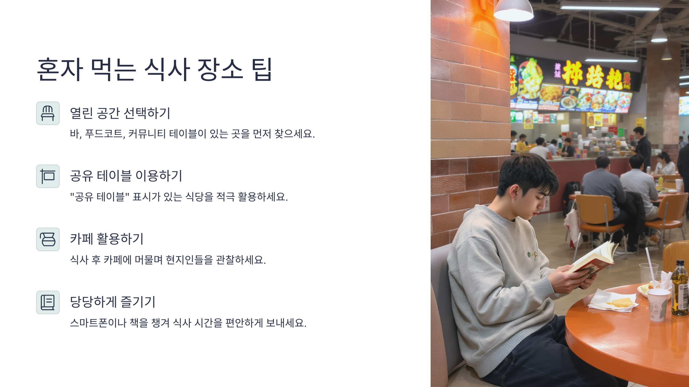 🍽️ 혼자 먹는 식사 장소 팁
