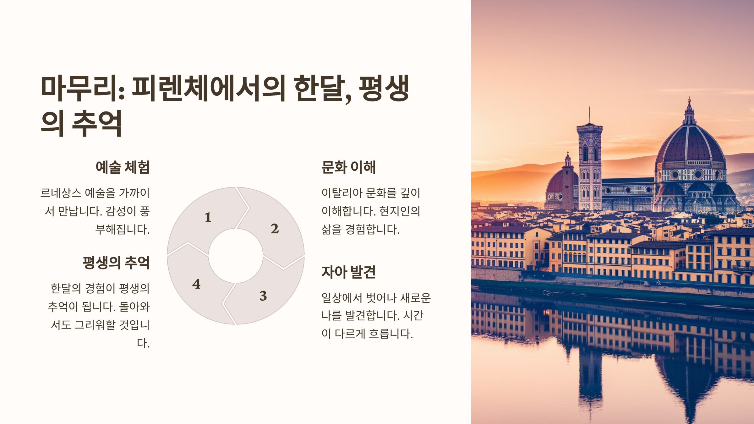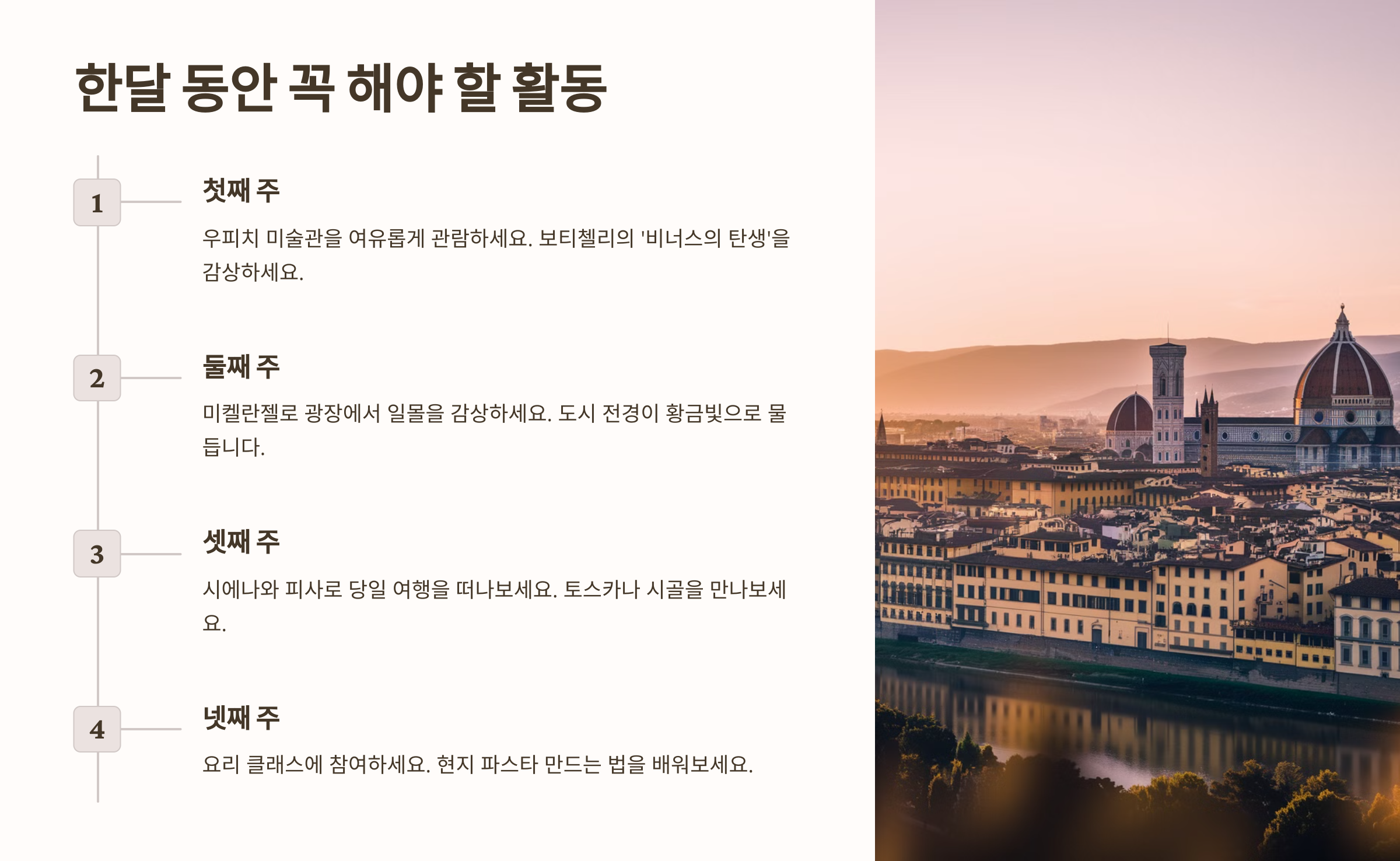 이제 피렌체 한달 살기의 매력부터 살펴볼까요? ✨