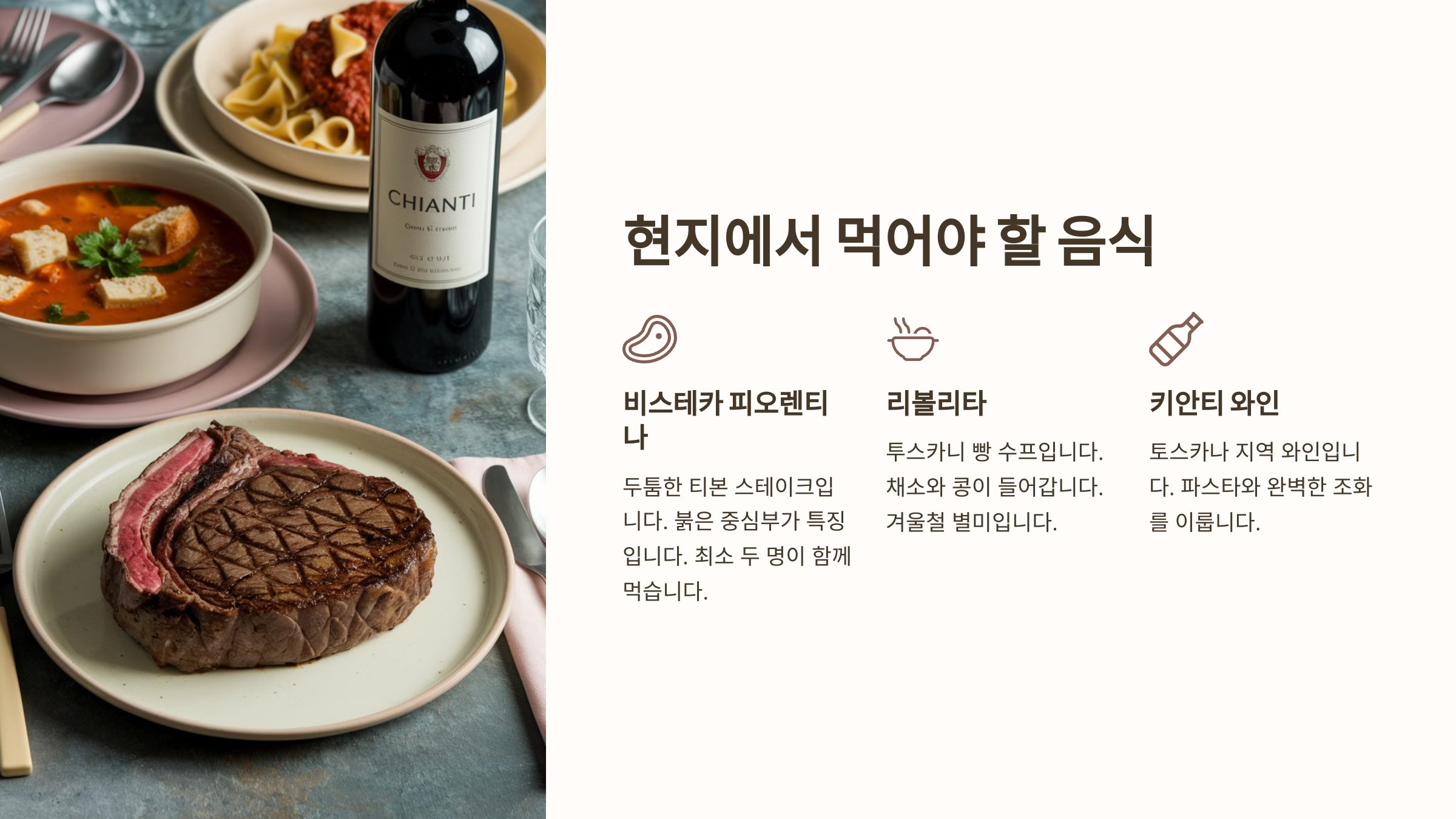 이제, 피렌체에서 꼭 먹어야 할 맛있는 음식들을 알아볼까요? 🍝