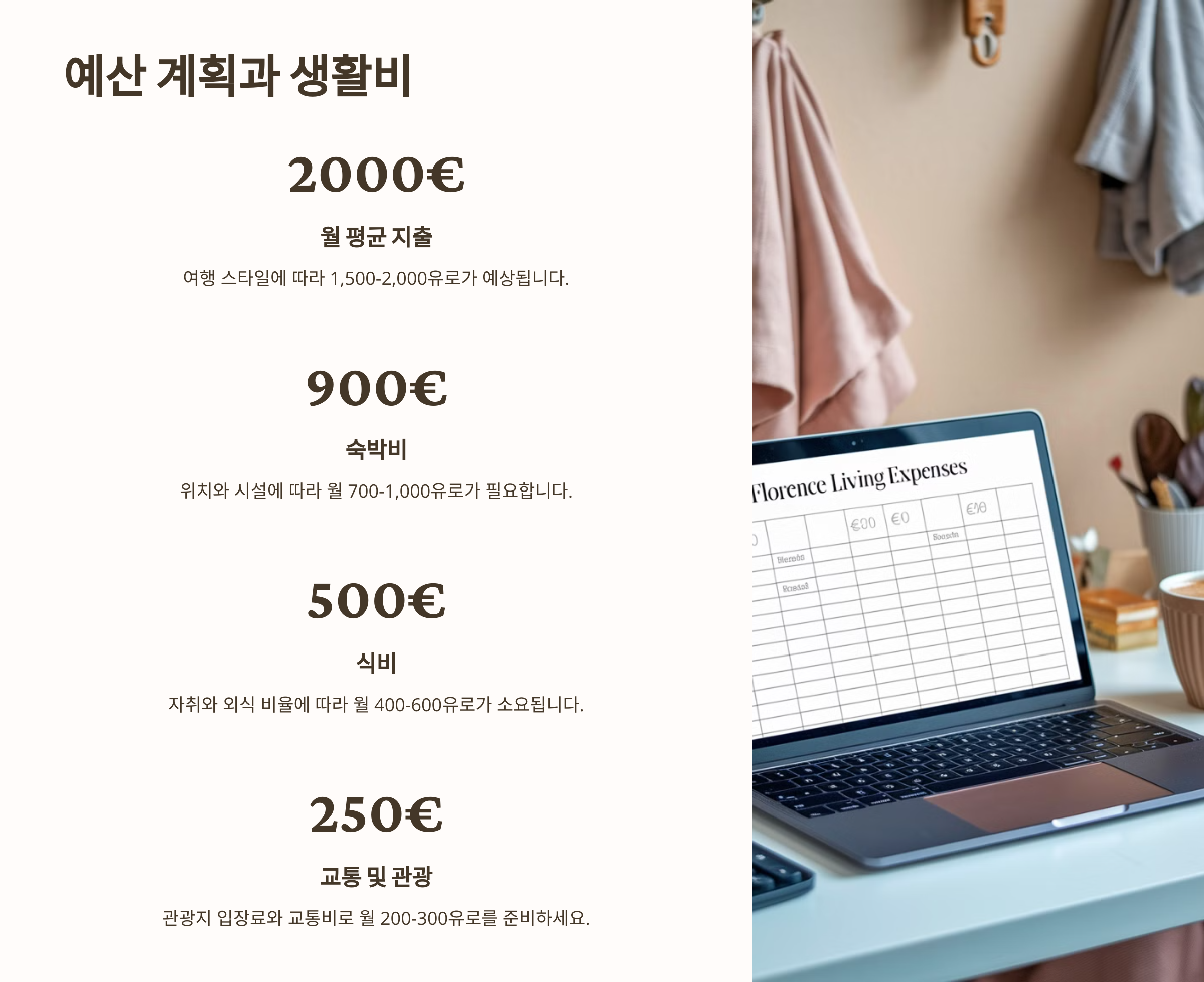 이제 피렌체에서 한 달 살기 예산과 생활비를 알아볼까요? 💰