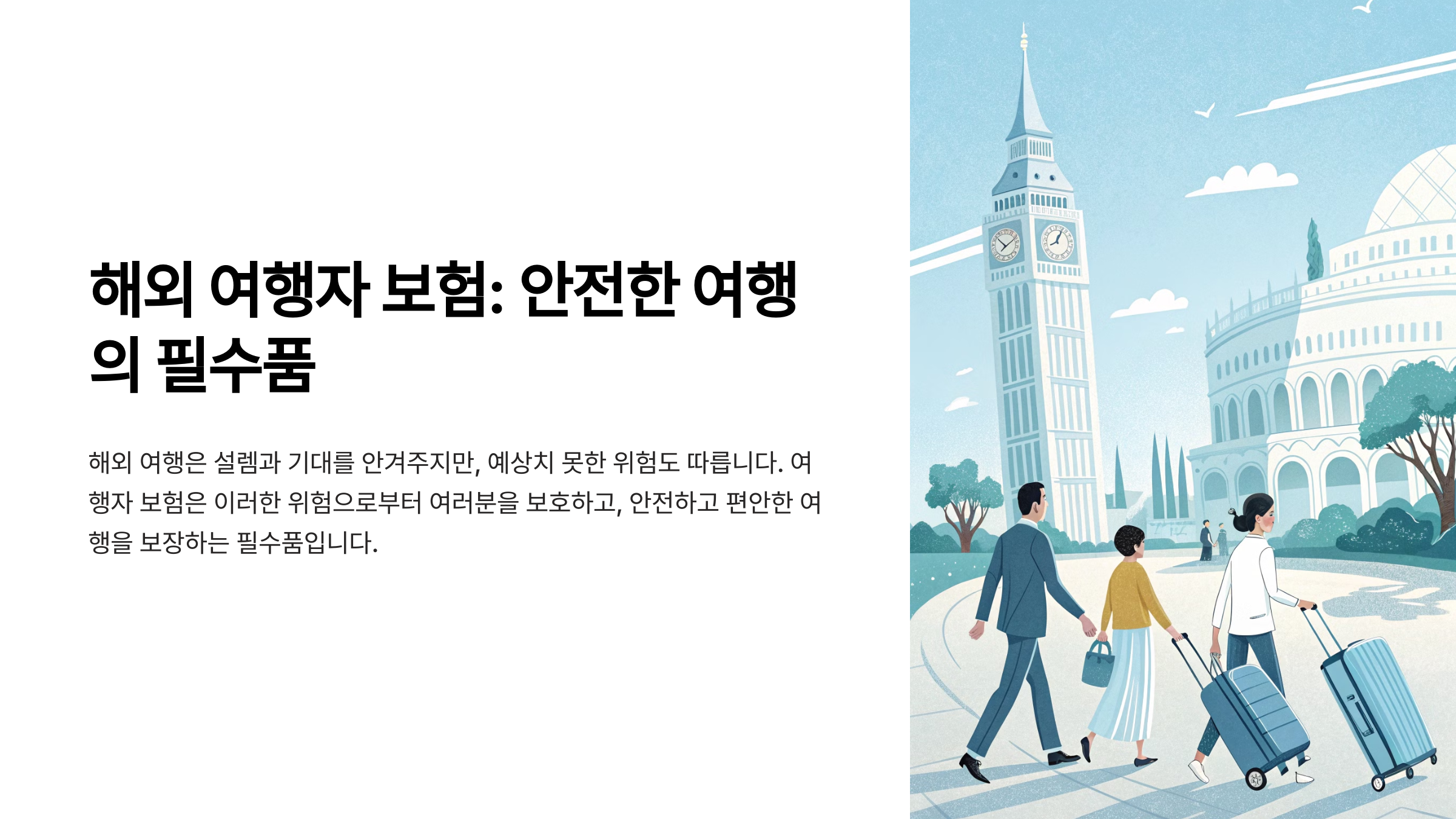 해외여행을 준비할 때, 항공권과 숙소 예약만큼 중요한 것이 **여행자 보험**이에요! ✈️