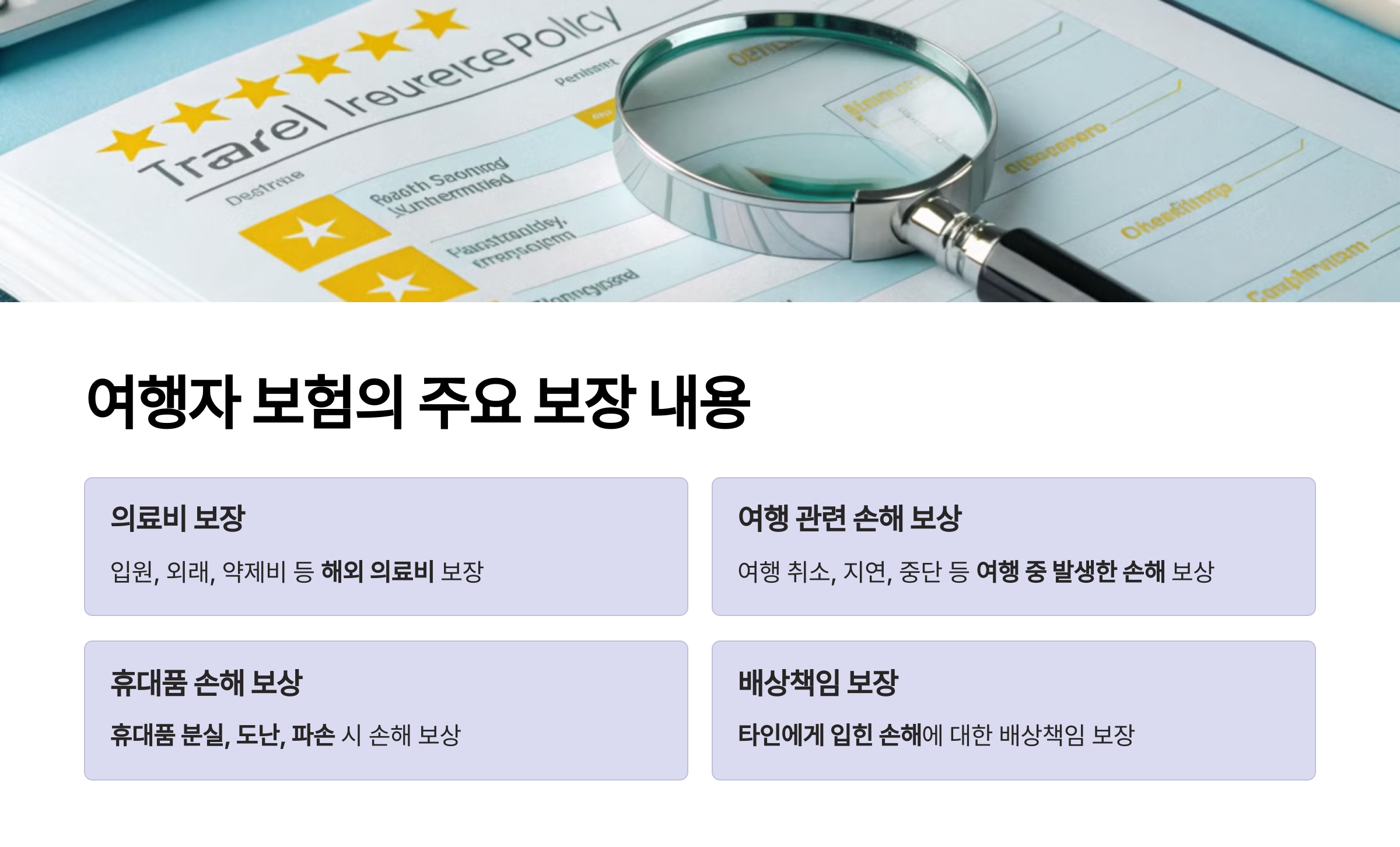 이제 여행자 보험이 어떤 항목을 보장하는지 알아볼까요? 🤔