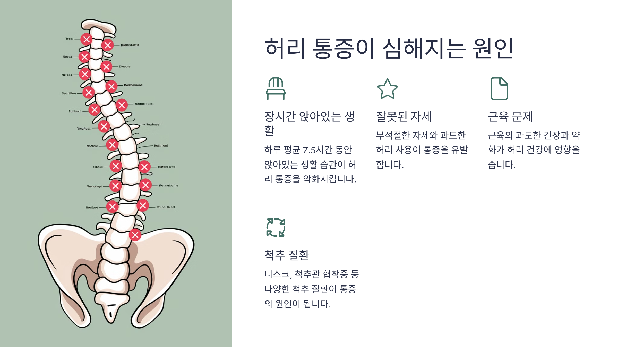아래에서 본격적으로 허리 통증의 원인과 해결 방법을 알아볼까요? 🌙