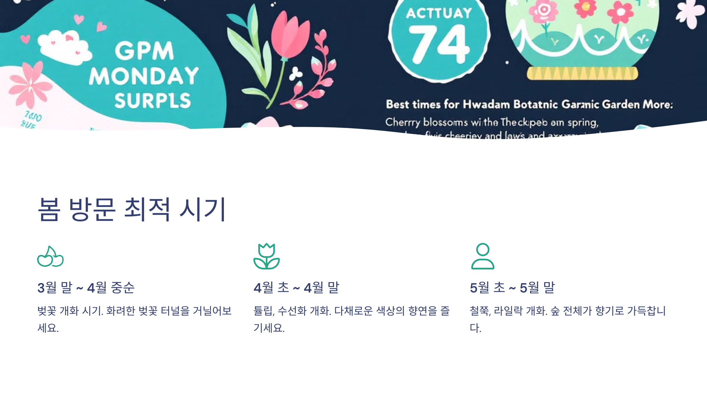 화담숲에서 봄을 제대로 즐기려면 원하는 꽃의 개화 시기를 맞춰 방문하는 것이 중요해요. 벚꽃이 만개하는 4월 초, 철쭉과 모란이 한창일 4월 말~5월 초가 가장 아름다운 시기랍니다. 🌼