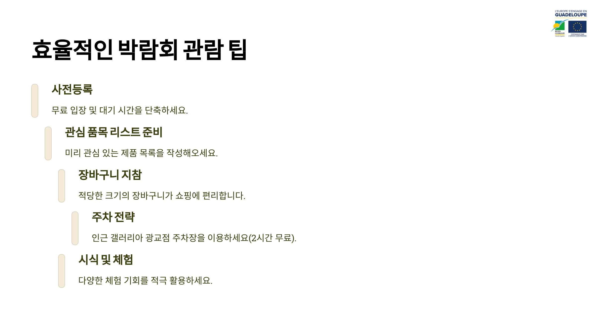 이 팁들을 활용하면 더욱 알차고 재미있게 박람회를 즐길 수 있을 거예요! 🎉