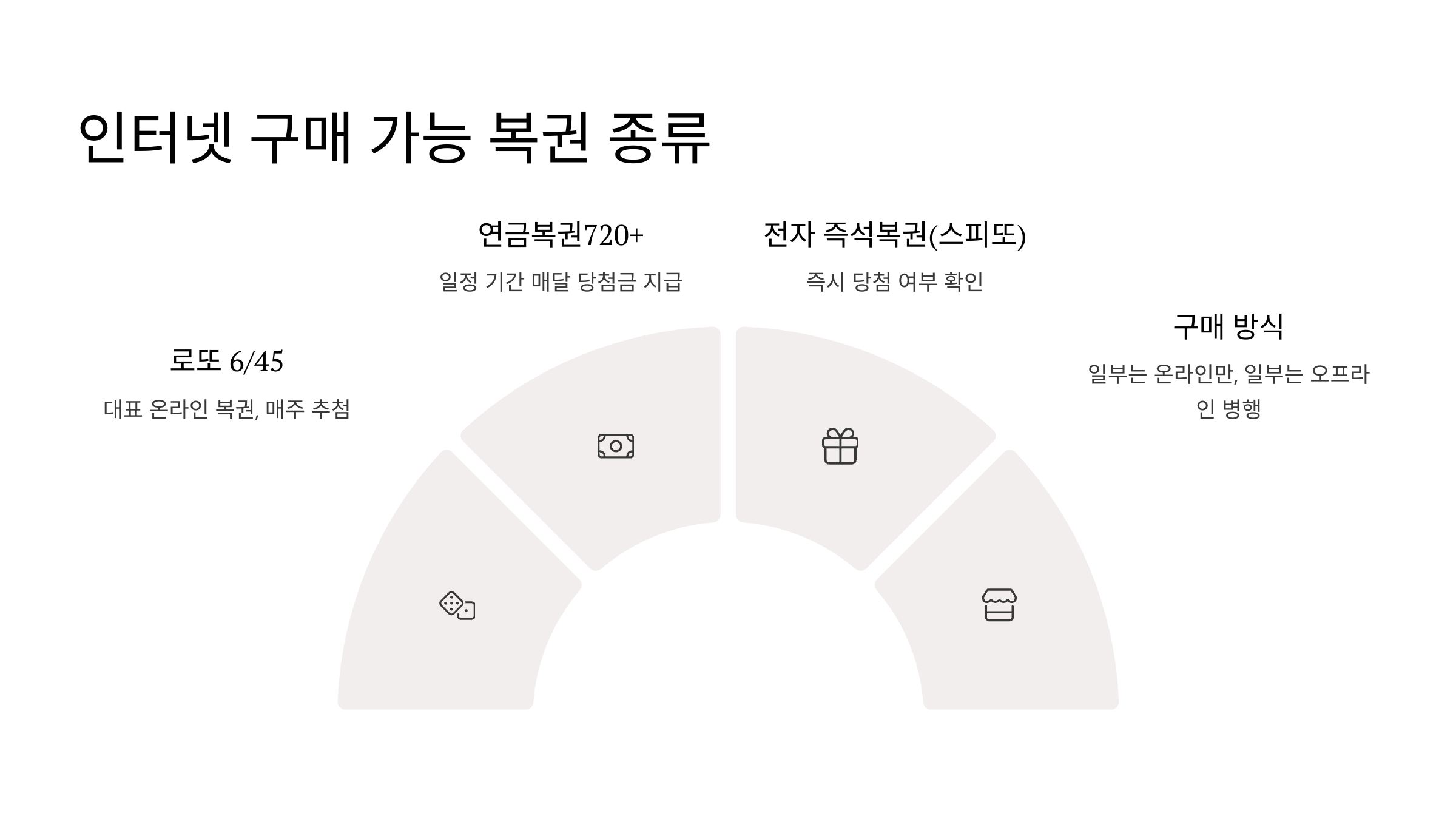 이 외에 일부 이벤트나 기획상품은 예외적으로 홈페이지를 통해 참여가 가능한 경우도 있어요. 하지만 대다수는 오프라인이 기본이기 때문에, 인터넷 구매가 가능한 복권은 제한적이라는 점은 알아두시는 게 좋아요.