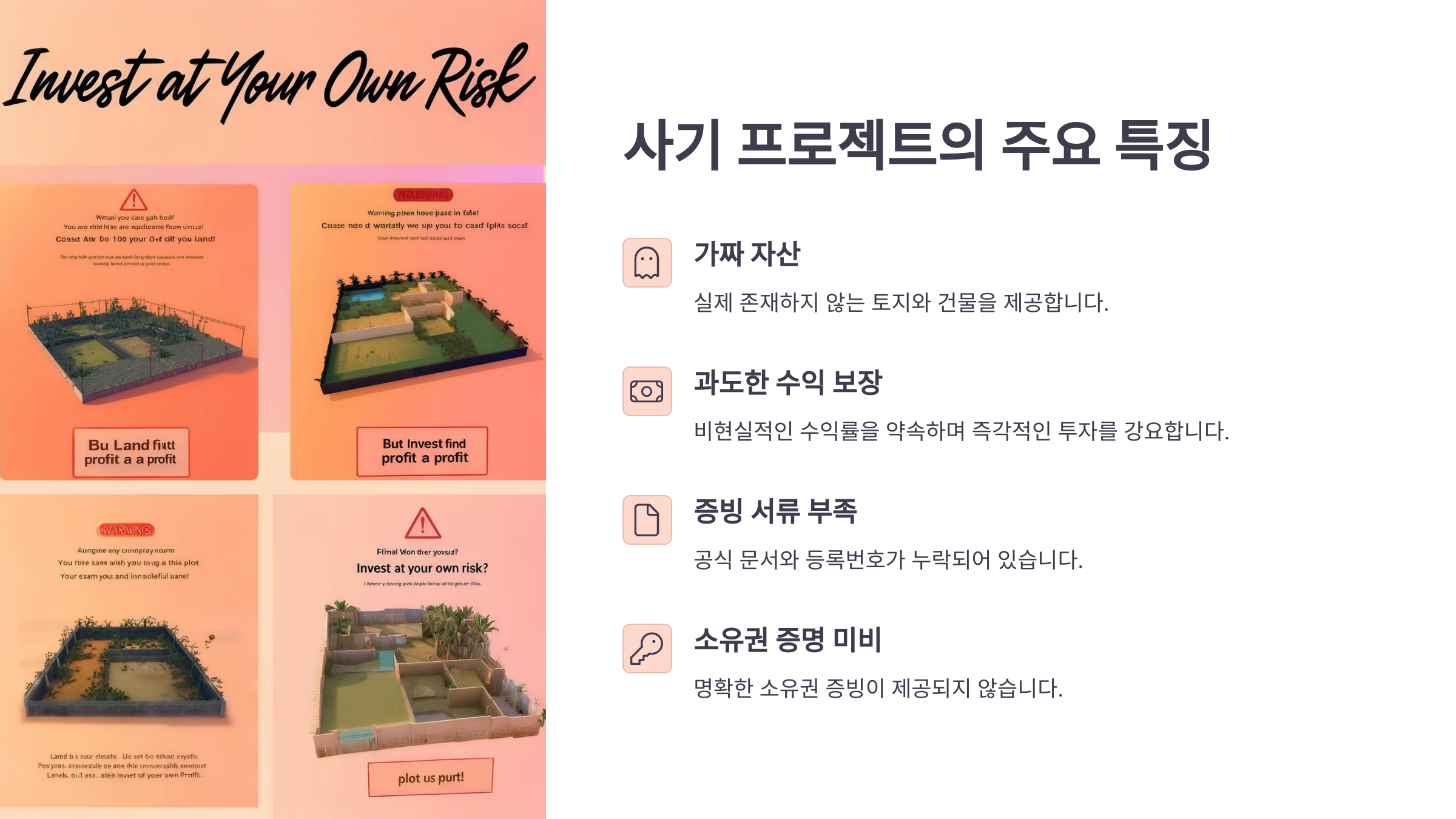 메타버스 부동산 시장이 커지면서 그만큼 사기 프로젝트도 늘어나고 있어요. 😥 투자의 기회를 잡는 것도 중요하지만, 내 소중한 자산을 지키는 건 더더욱 중요해요!