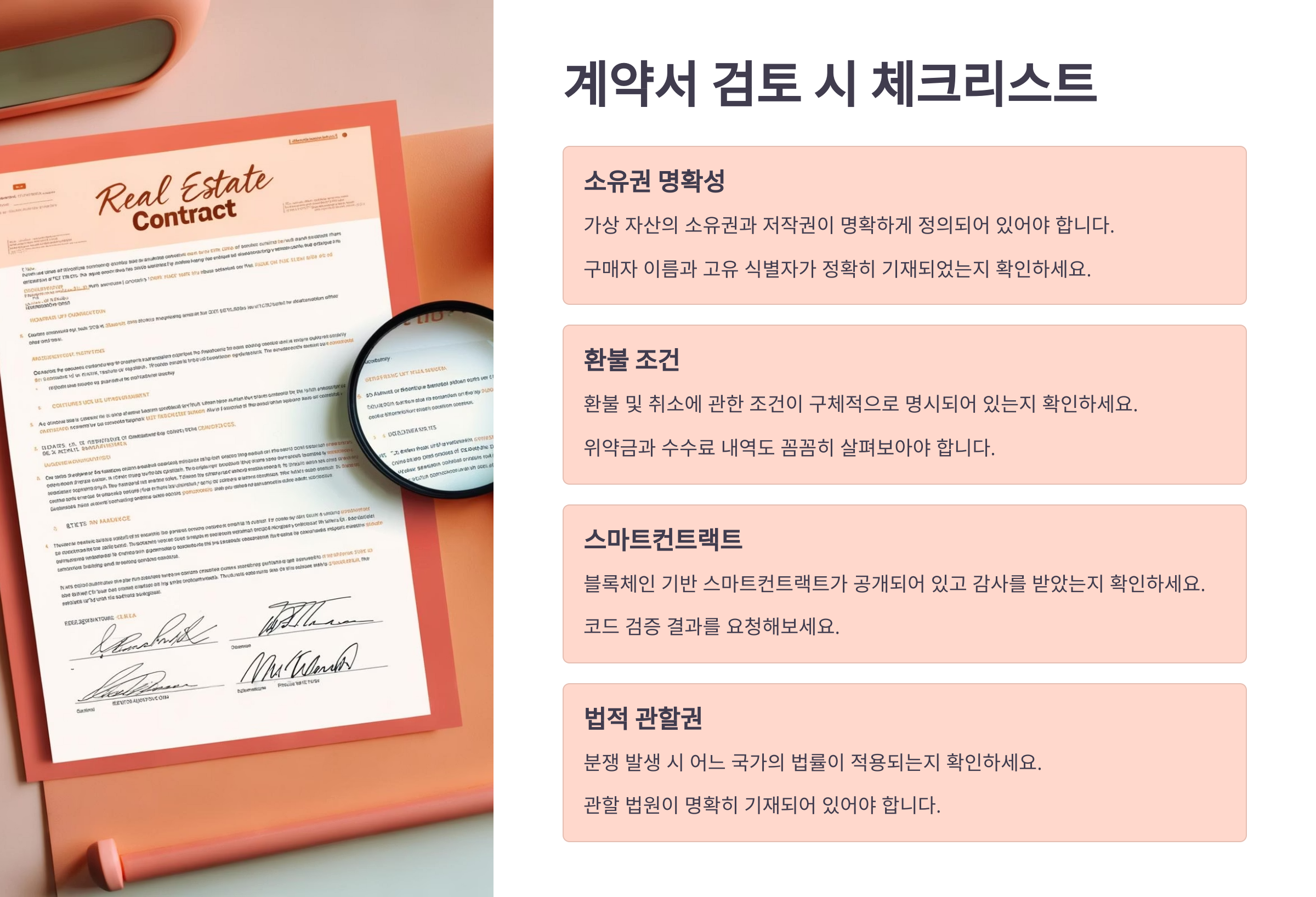 메타버스 부동산 투자에서도 '계약서'는 정말 중요해요. 계약서를 제대로 읽지 않고 서명하면 나중에 낭패를 볼 수 있답니다. 🧾