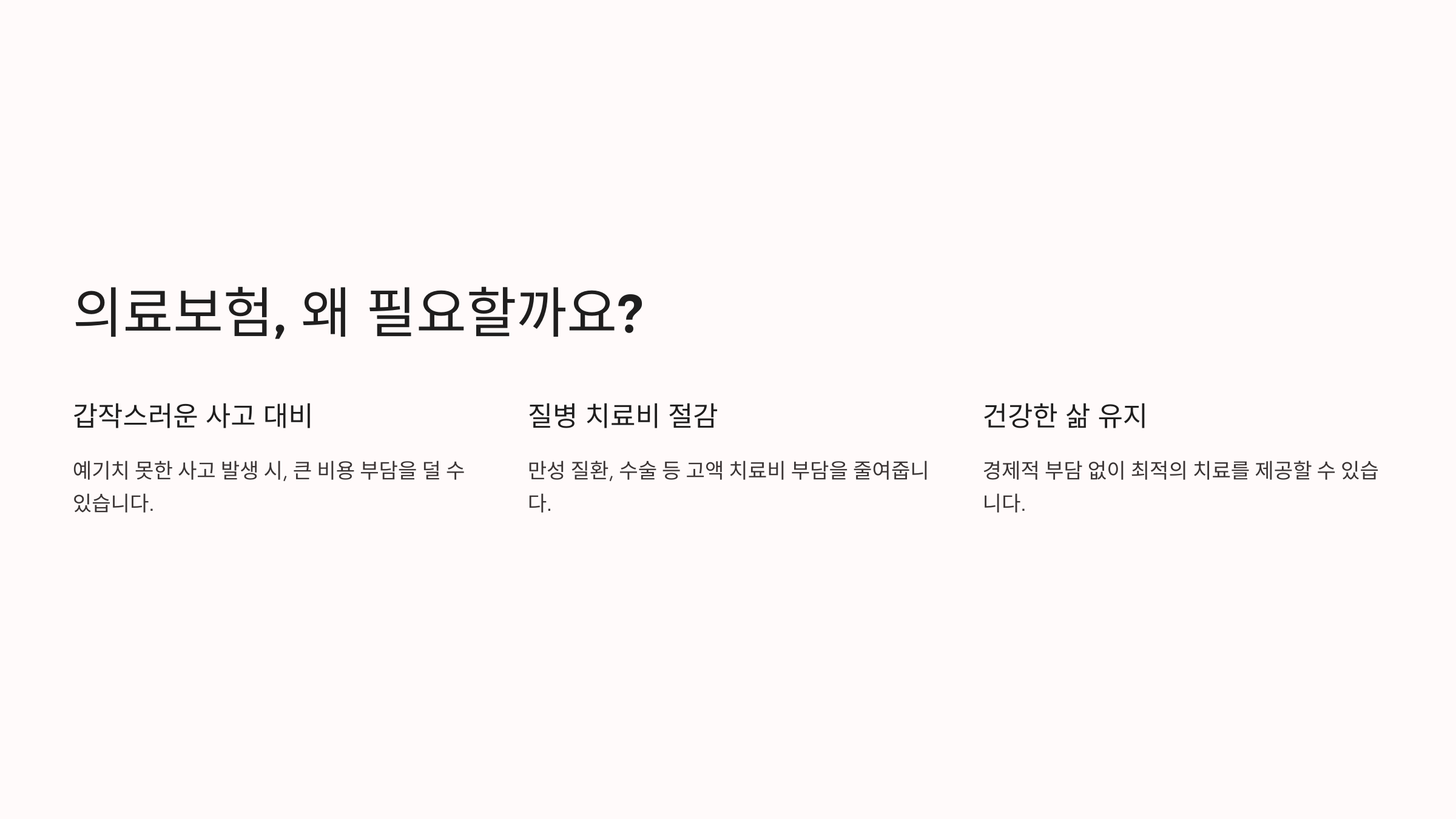갑작스러운 의료비 부담 응급 수술, 입원 치료 등의 예상치 못한 비용을 대비