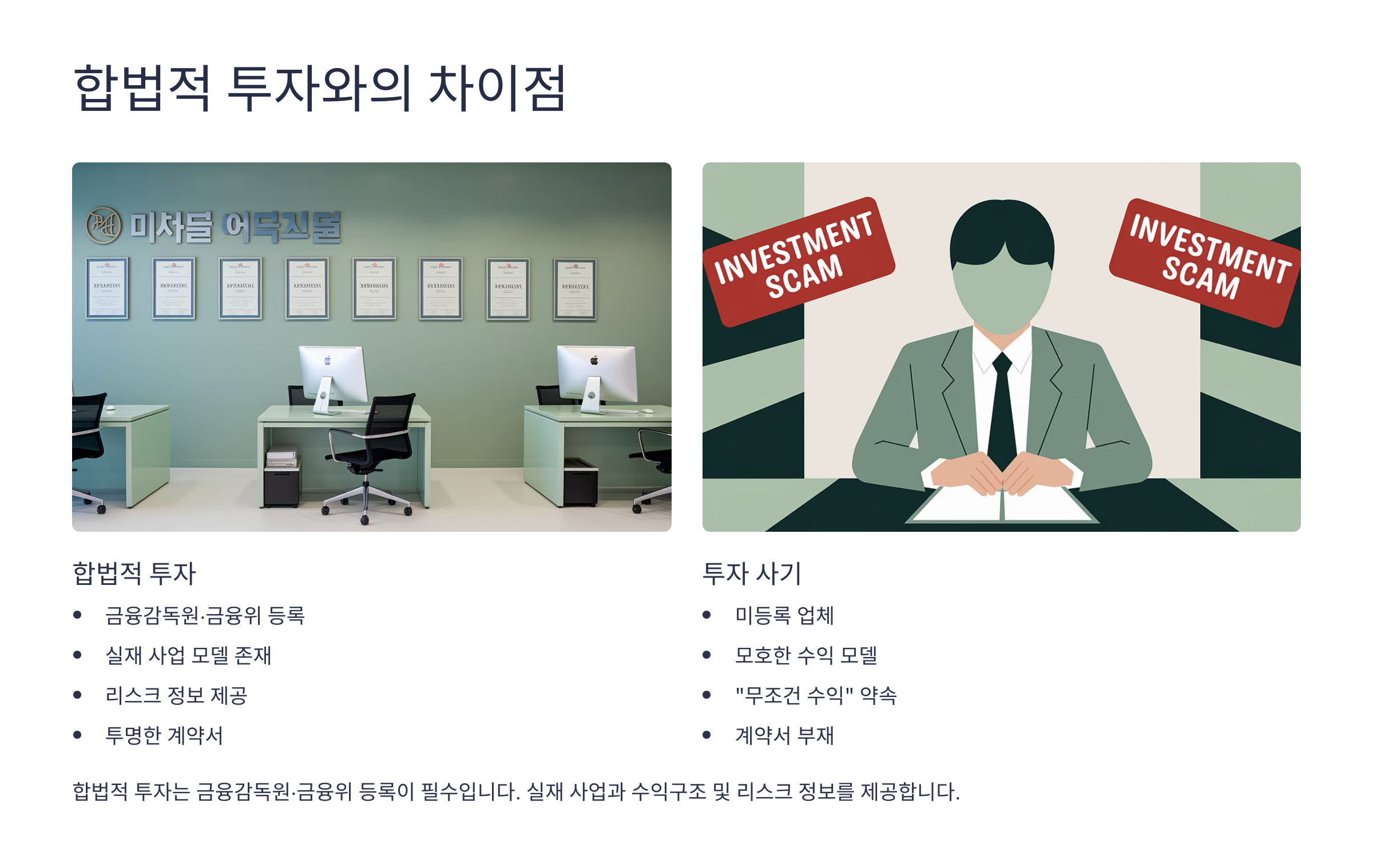 ✅ 합법 투자 vs 사기 투자 비교표