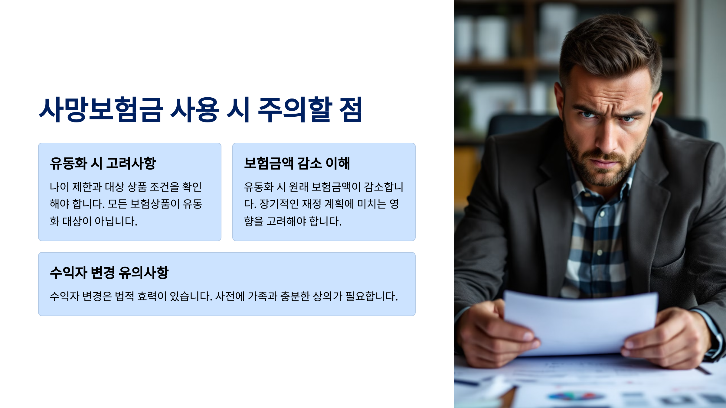 사망보험금을 생활비로 사용할 수 있지만, 무분별하게 사용하면 예상보다 빠르게 소진될 위험이 있어요. 효율적인 재정 관리를 위해 몇 가지 중요한 점을 유의해야 해요.