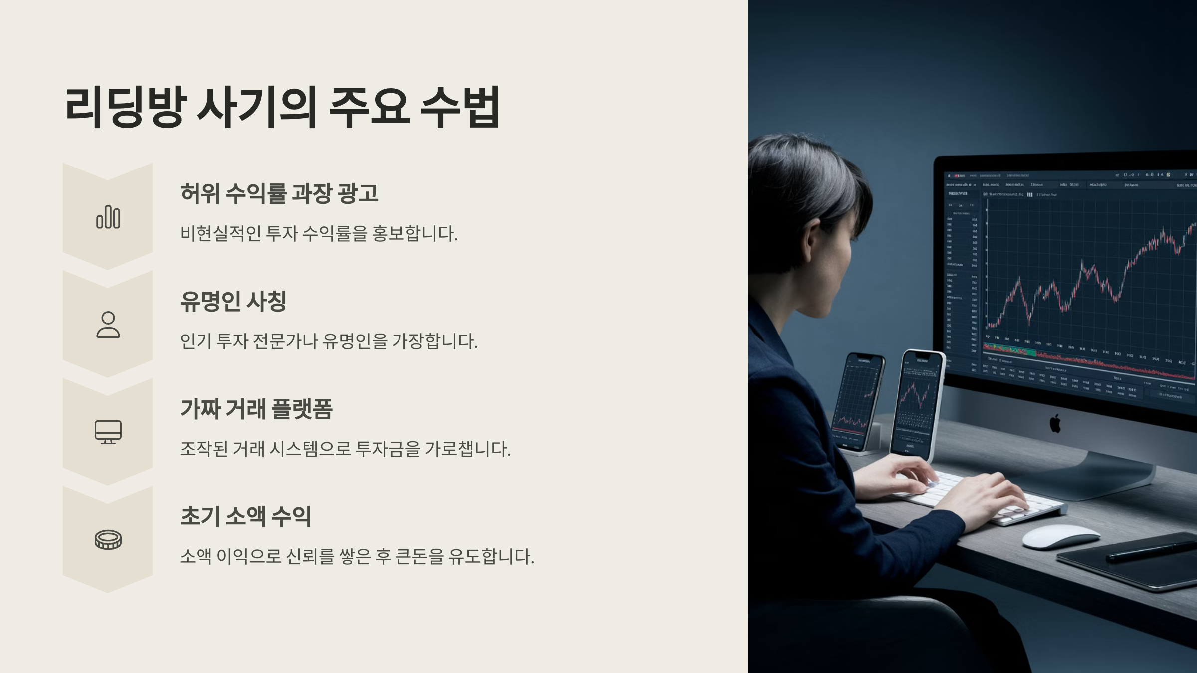 이제 본격적으로 리딩방 사기의 주요 수법을 하나씩 파헤쳐 볼게요! 👇