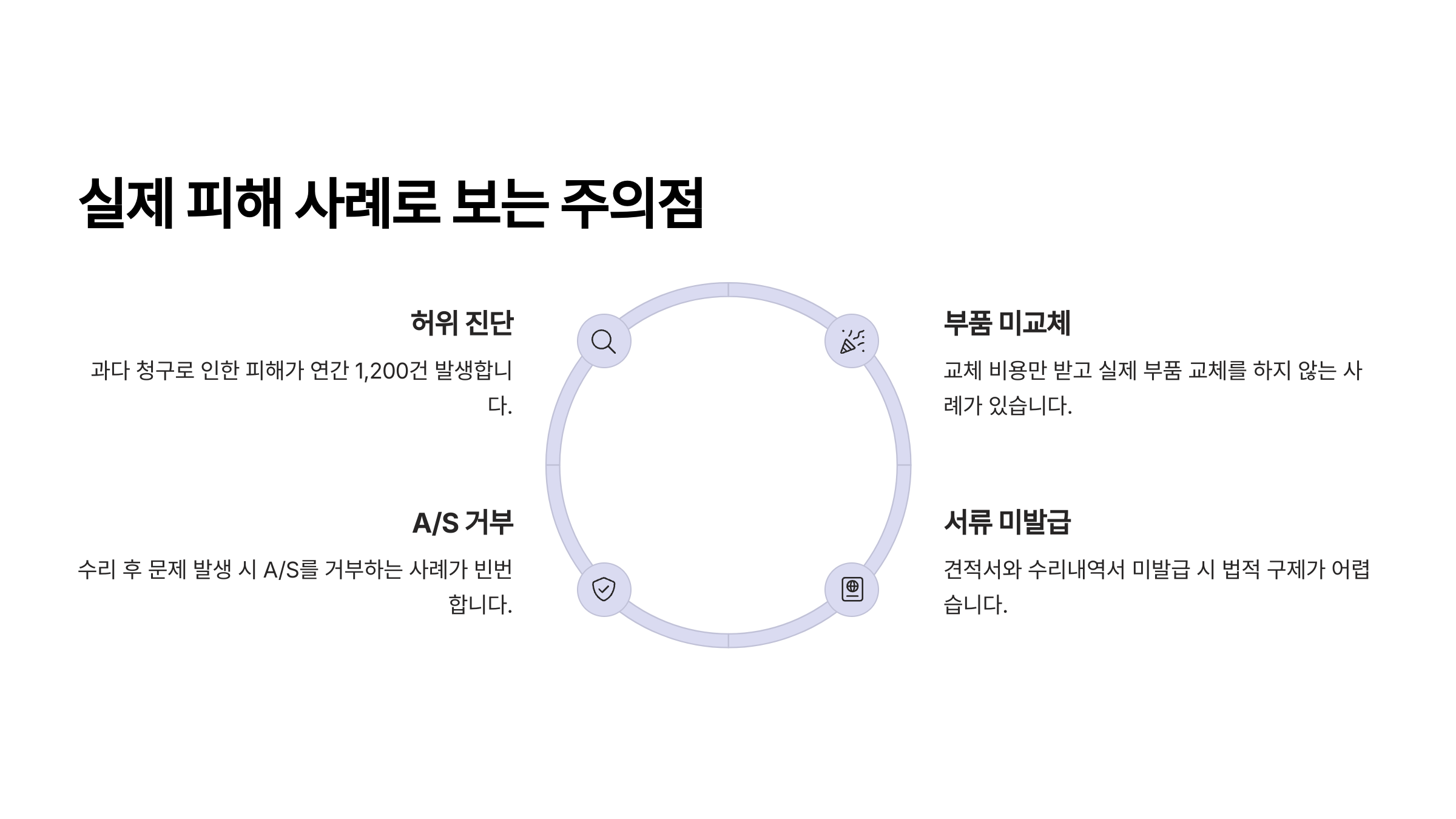 아무리 좋은 후기를 봤다 해도, 정비소에서 피해를 본 사례는 생각보다 자주 발생해요. 정비에 대한 지식이 부족한 운전자를 대상으로 과도한 수리, 불필요한 부품 교체, 과장된 문제 진단 등을 하는 일부 정비소는 조심해야 해요.