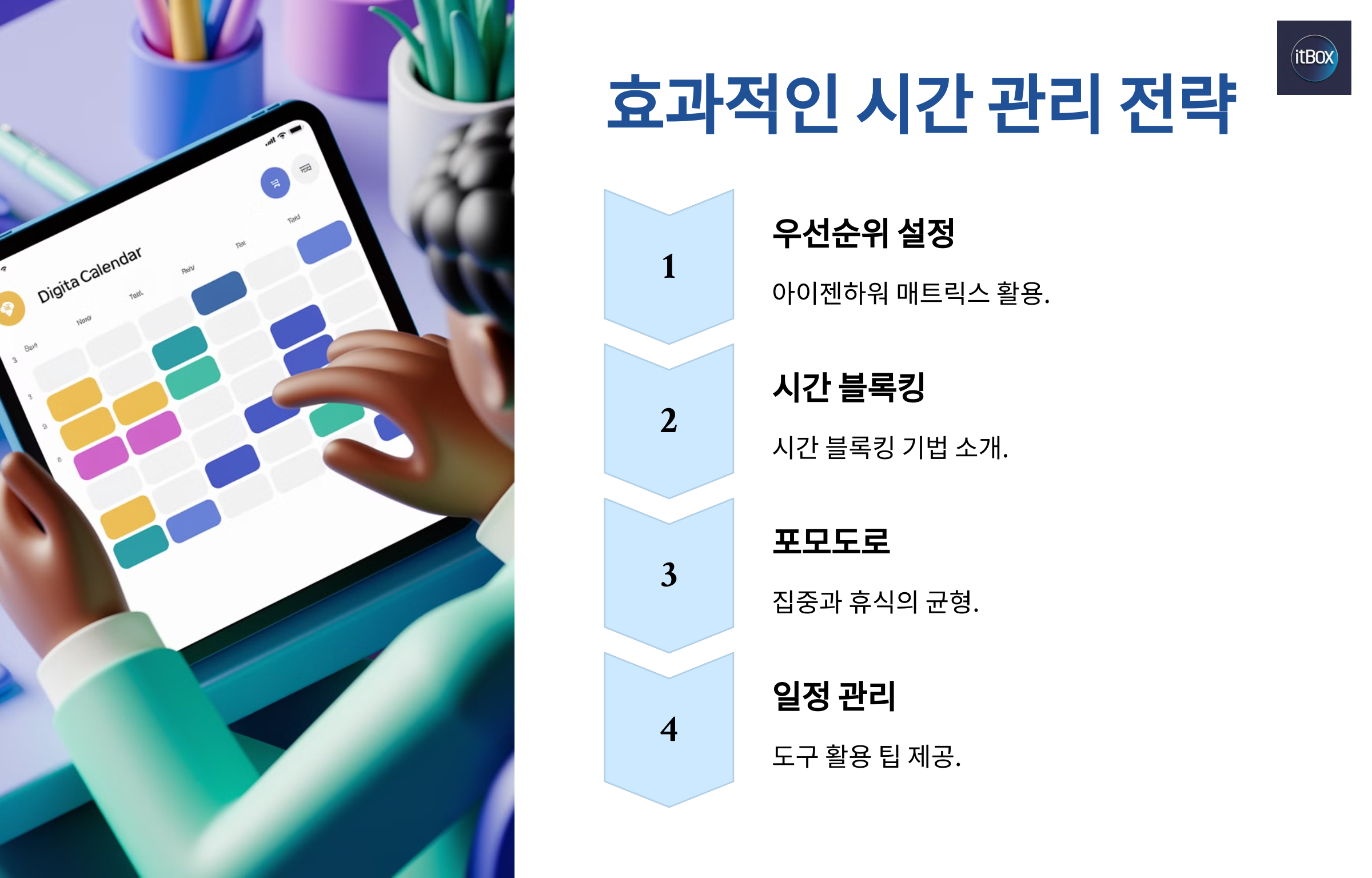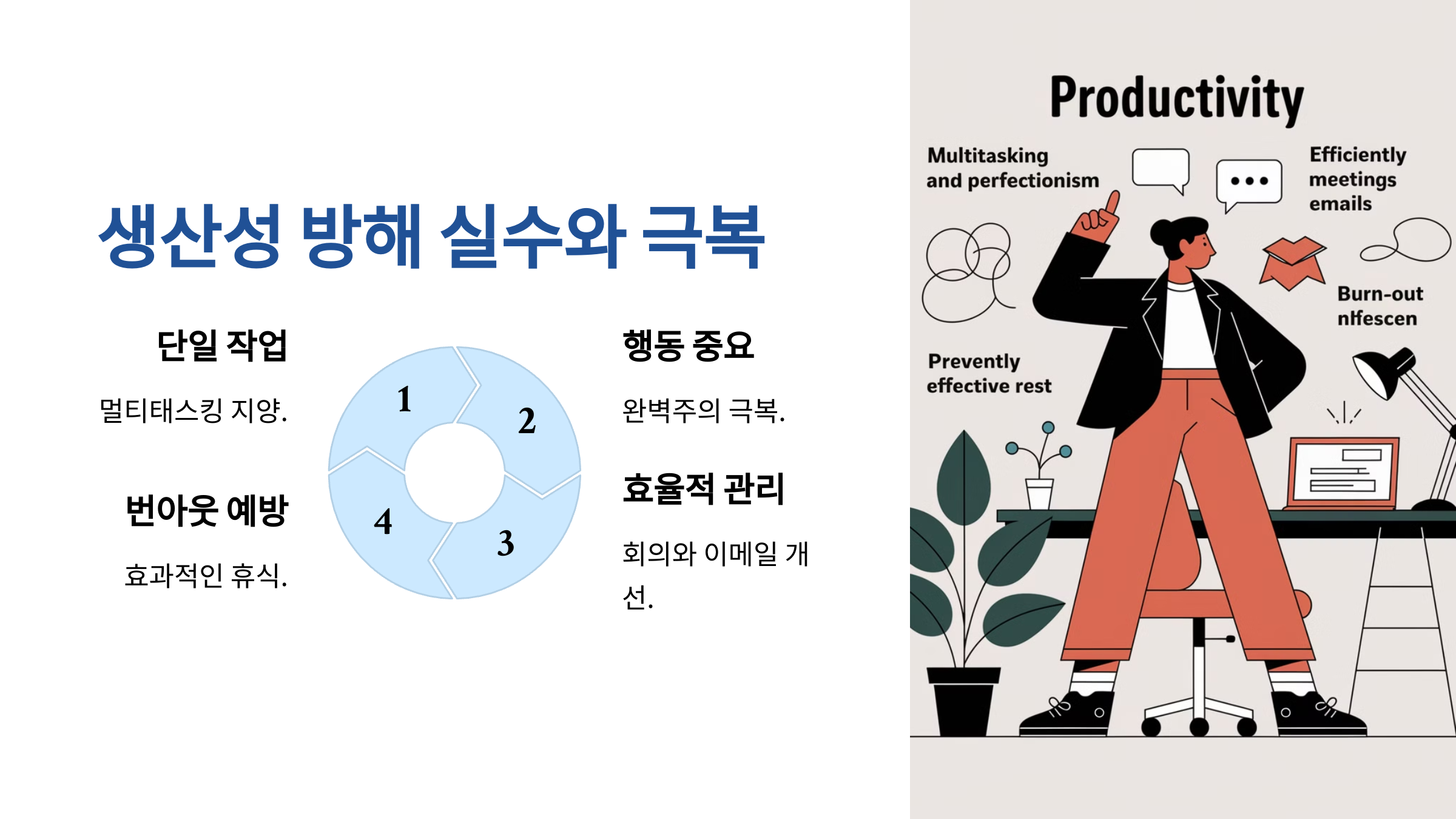 그렇다면, 생산성을 높이려면 어떻게 해야 할까요? 가장 먼저 **시간 관리**부터 알아볼게요. ⏳