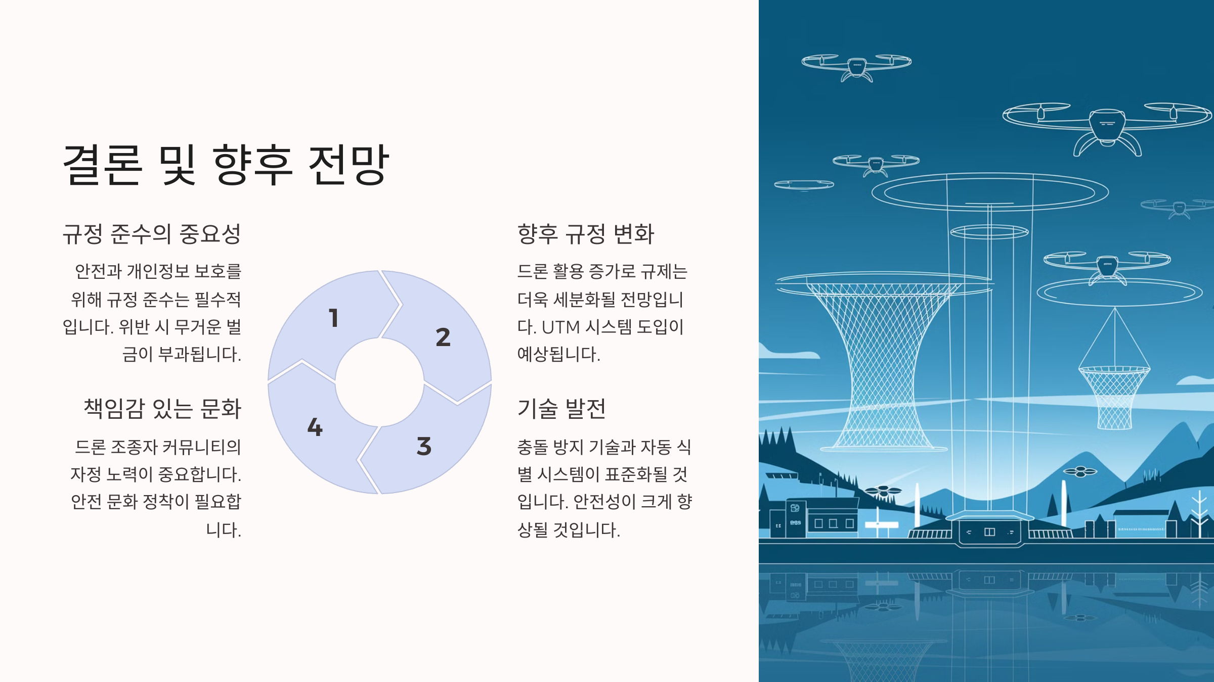 드론을 비행할 때는 반드시 **법적 규정을 준수하고 안전 수칙을 지켜야 해요.** 🚁📜