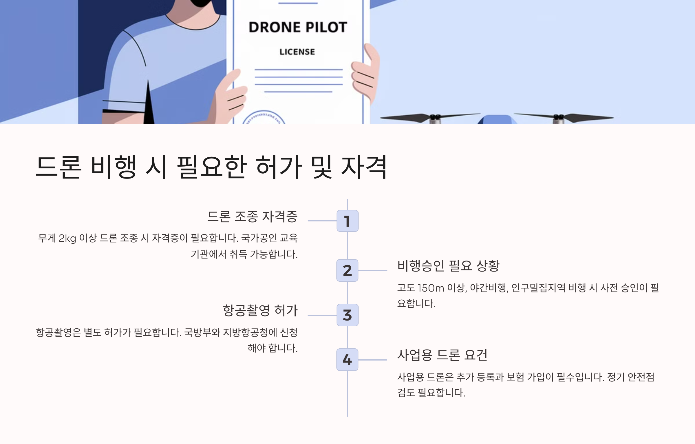• 📍 **250g 이상 드론 조종**은 드론 조종자 자격증 필수