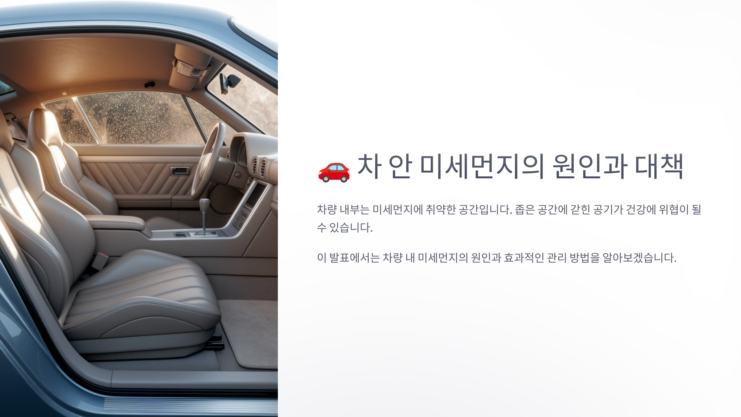 ⚠️ 다음 섹션에서는 "차 안 미세먼지가 위험한 이유"에 대해 알아볼게요!