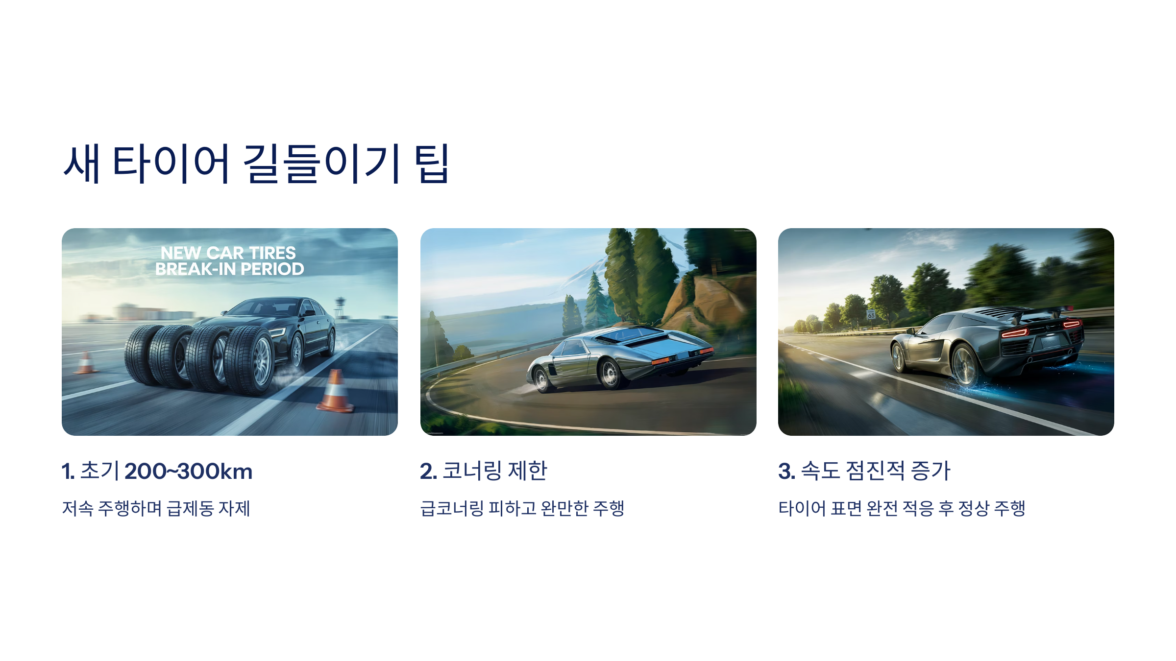 새 타이어도 사람처럼 적응 기간이 필요해요. 이 시간을 잘 지켜주면 훨씬 더 오래, 더 안전하게 사용할 수 있답니다. 타이어도 배려받으면 더 잘 달려줘요! 🚗💨