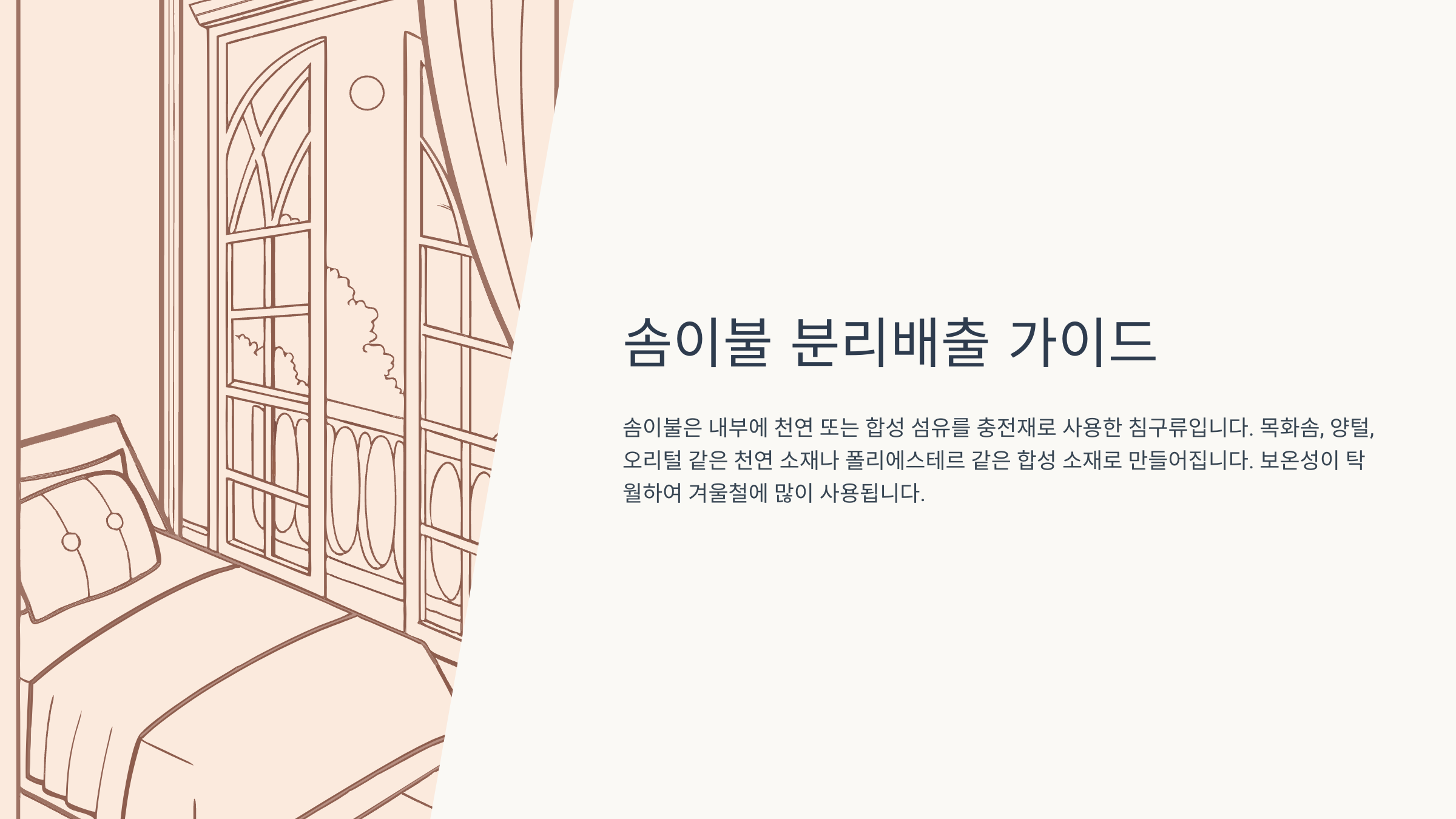 솜이불은 단순한 천 조각이 아니라 부피도 크고, 재질도 복합적이라서 배출 방법이 따로 정해져 있어요. 내가 생각했을 때 이거 제대로 알고 버리는 게 진짜 생활 속 환경 보호 시작이에요. 오늘은 솜이불을 깔끔하고 합법적으로 버리는 법을 알려드릴게요 🧺