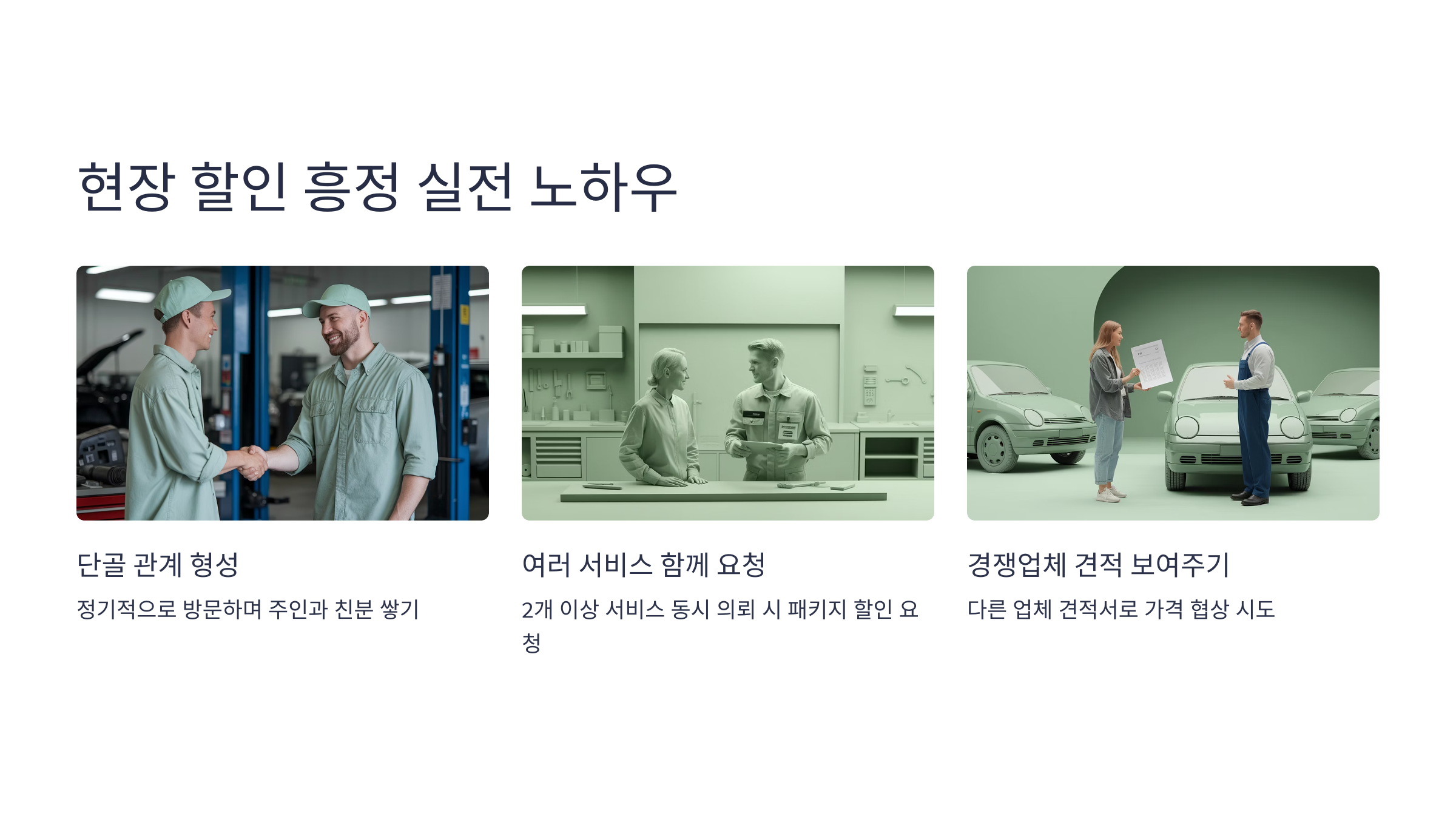 이런 공공 프로그램은 놓치기 쉬워서 먼저 알아보는 사람이 혜택을 받아요! 지자체에서 열리는 무상 점검 이벤트는 신청만 해도 차량을 꼼꼼히 진단받을 수 있어 정말 좋아요. 다음은 정비 현장에서 직접 **할인 흥정하는 꿀팁** 알려드릴게요! 🤫