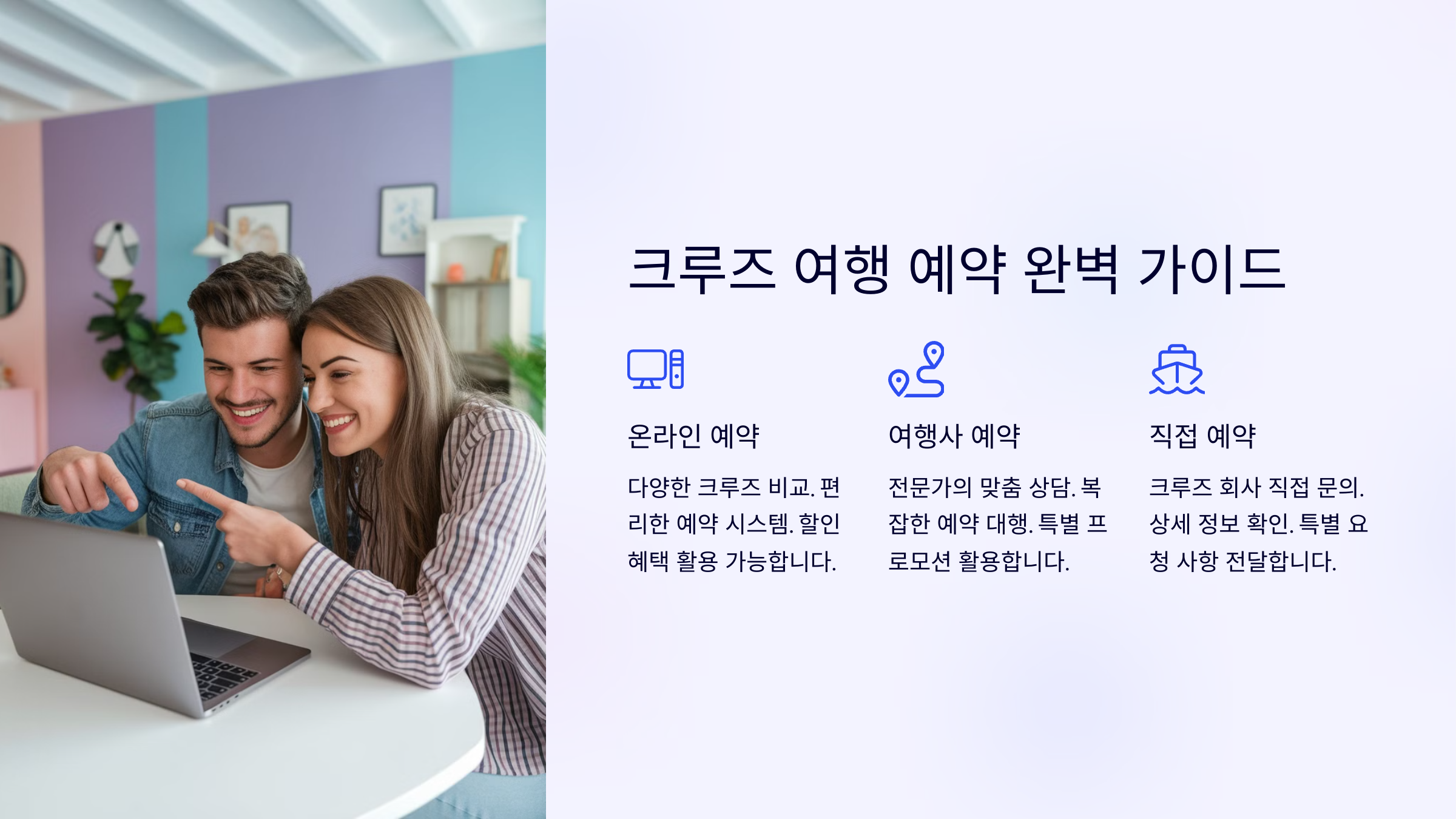 어떤 크루즈를 선택할지 결정했다면, 이제 **크루즈 여행 예약 방법**을 알아볼까요? 🎟
