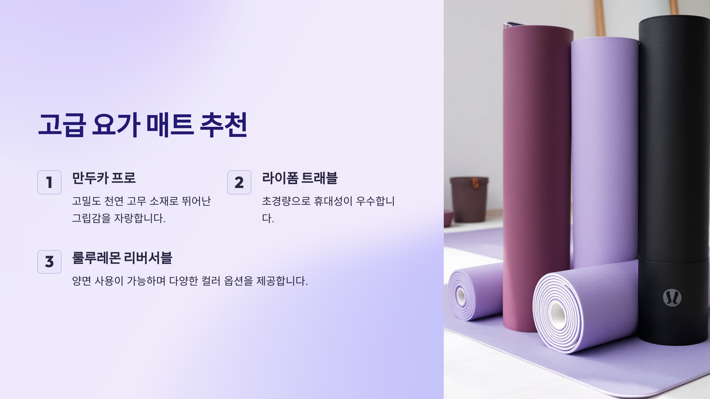 이제 **고급 요가 매트 추천 제품**부터 살펴볼까요? ✨