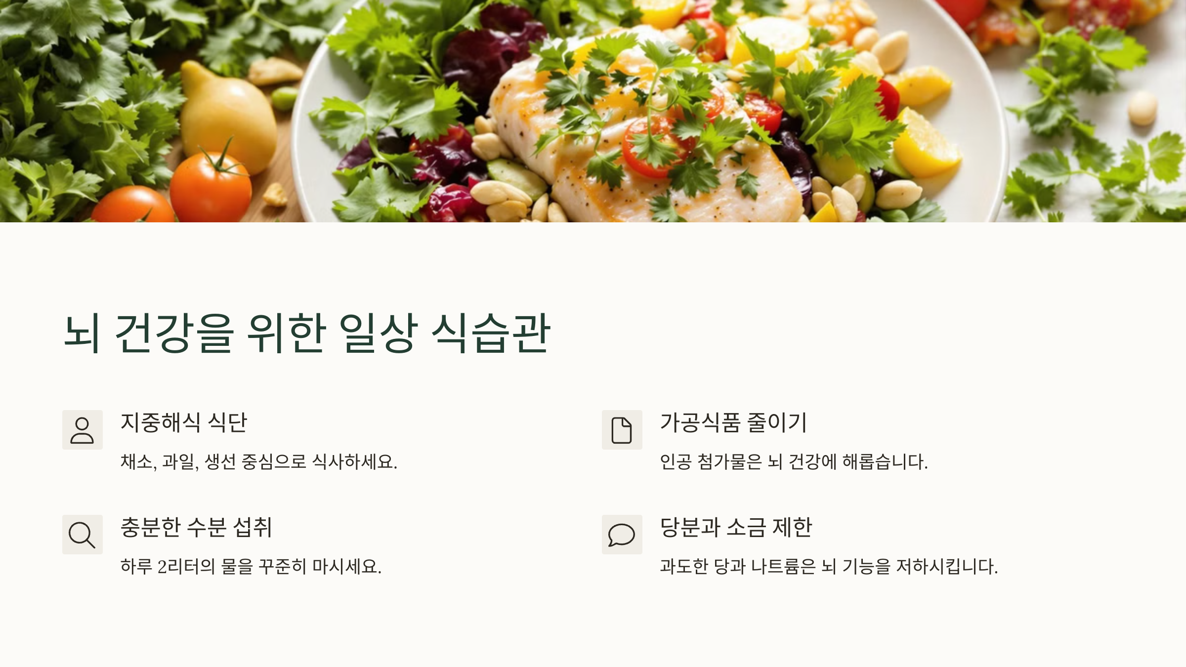 하지만 반대로, 뇌세포의 산화 스트레스를 줄이고 염증을 완화하는 식단을 실천하면 뇌의 건강을 오래도록 유지할 수 있어요. 식단은 단순히 영양 공급 그 이상으로, 뇌의 ‘컨디션’을 좌우하는 핵심이거든요.