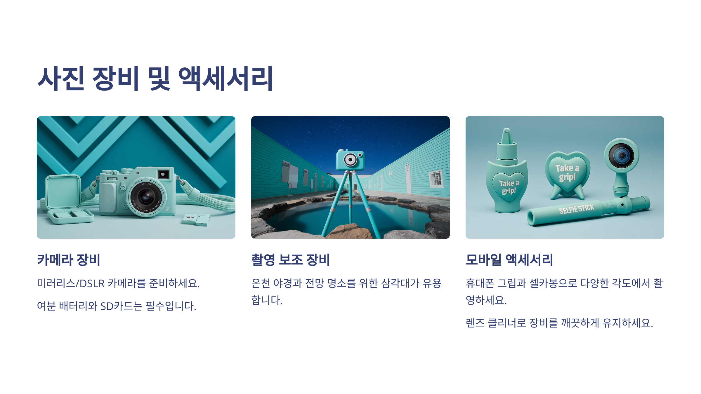 온천은 힐링의 핵심이에요. 작은 준비 하나로 더 편안하고 여유로운 시간을 보낼 수 있으니 꼼꼼히 챙겨주세요! 다음은 📷 사진 장비 및 액세서리로 이어갈게요!